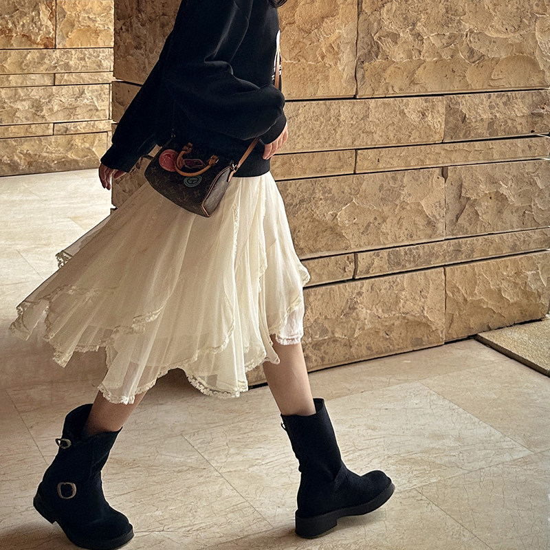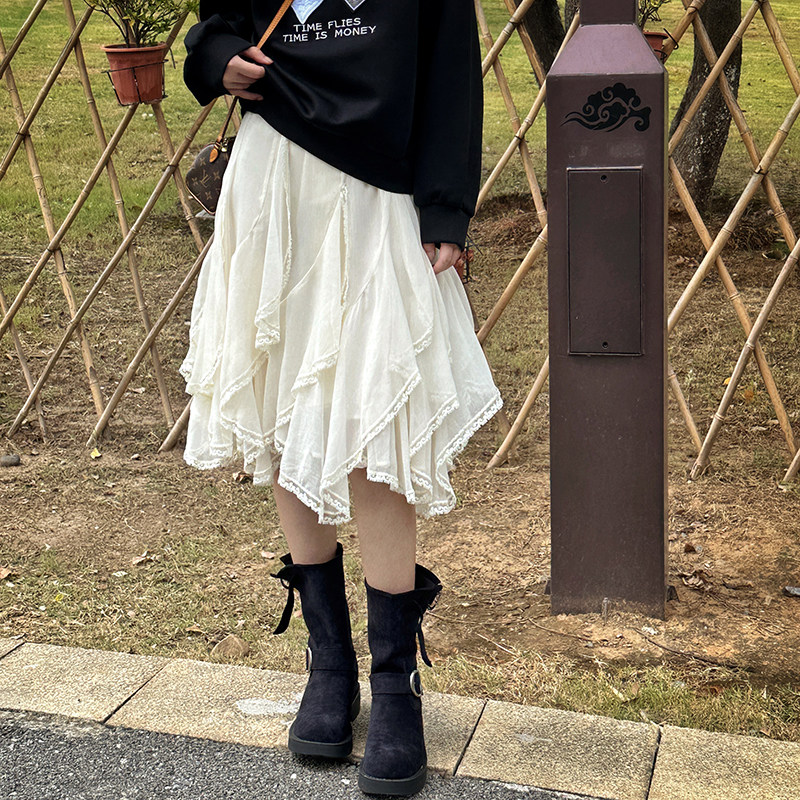 不规则蕾丝美拉德风半身裙女超仙垂感飘逸气质打底A字及膝中长裙