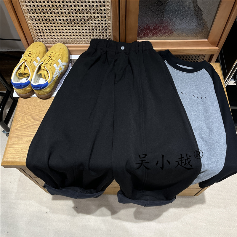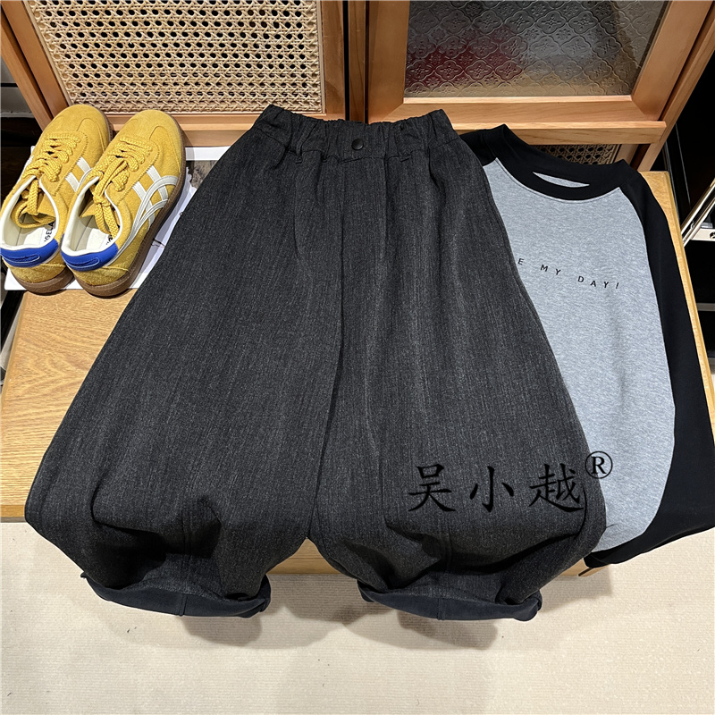 吴小越W1676男童加绒西裤冬款儿童长裤男孩中大童休闲黑色运动裤