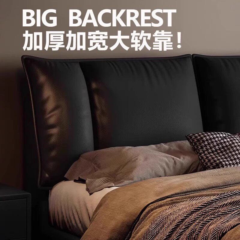 金可儿意式极简真皮床现代简约主卧大床高端大气1米8双人储物床软