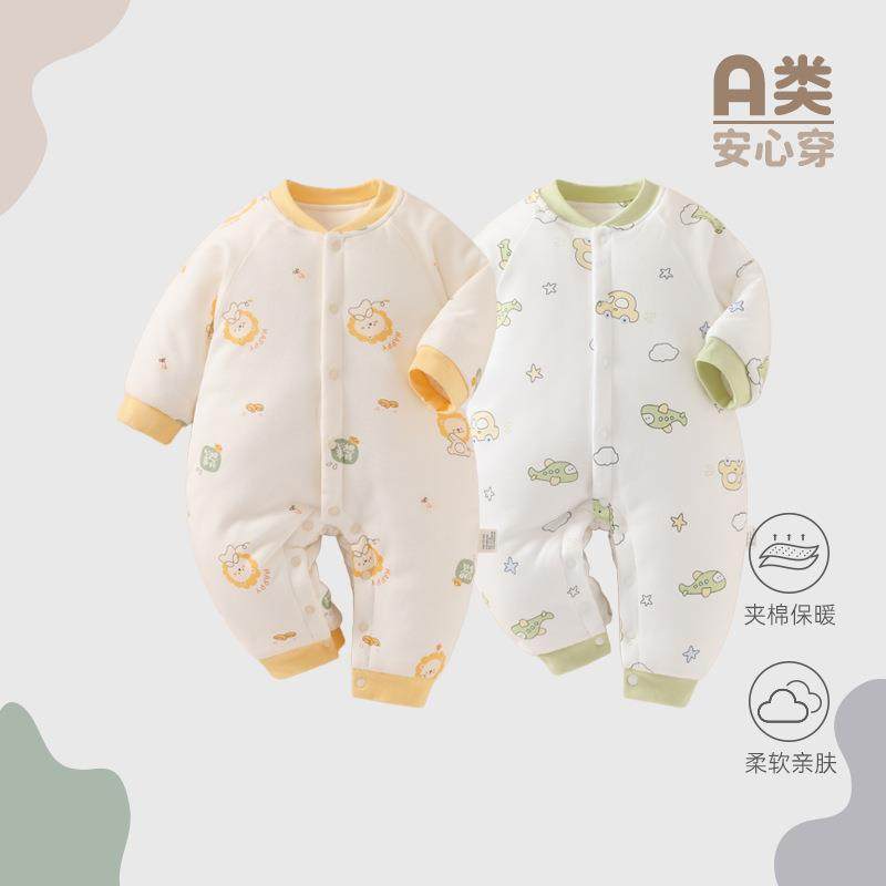 2025加厚冬季180g婴儿连体衣保暖夹棉冬款宝宝哈衣爬服纯棉a类