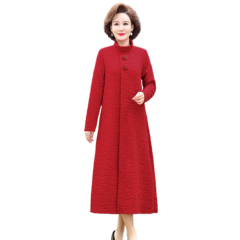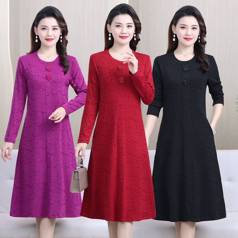 中年妈妈新款洋气春装长袖连衣裙40-50岁中老年女装春秋过膝裙子