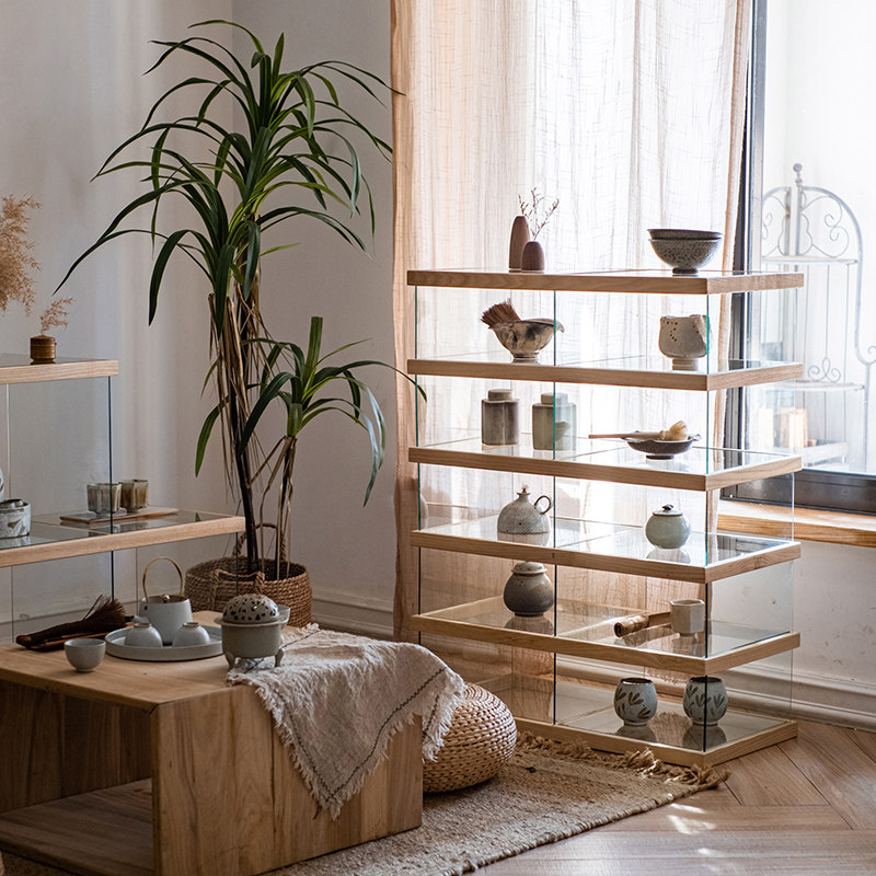 掬涵创意组合实木玻璃柜展示柜多宝格子架茶具置物架中式收纳陈列