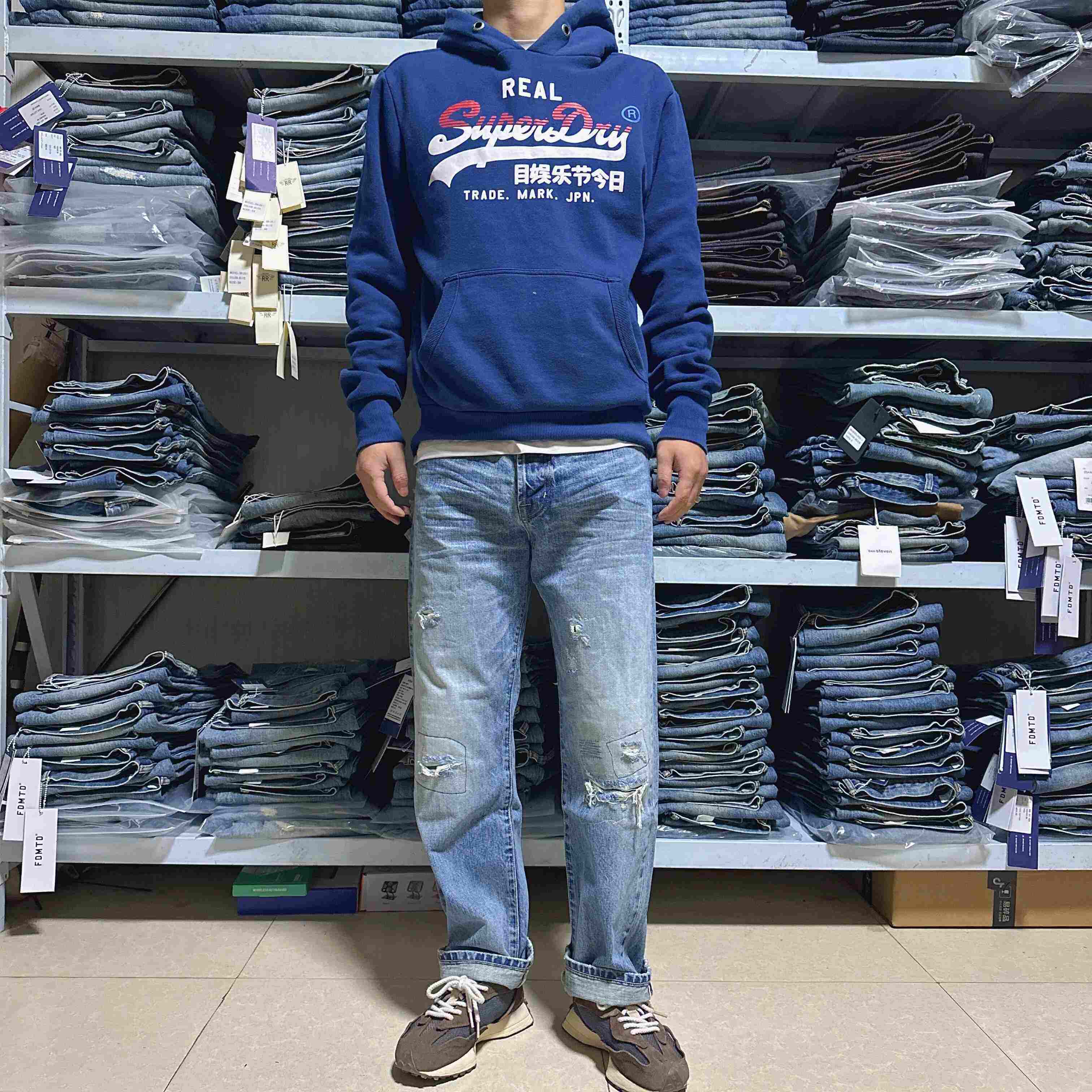 震撼牛王!双R素净通勤王 立体蜂窝猫须男士宽松直筒水洗牛仔裤