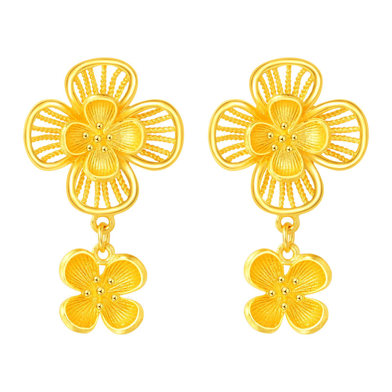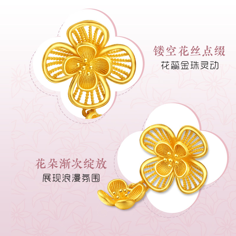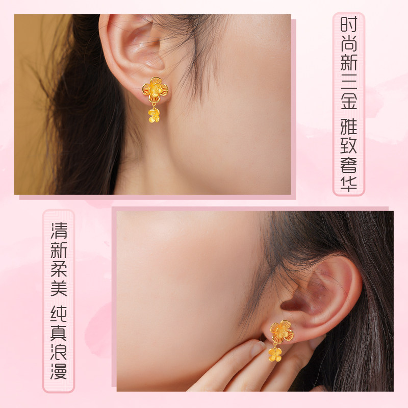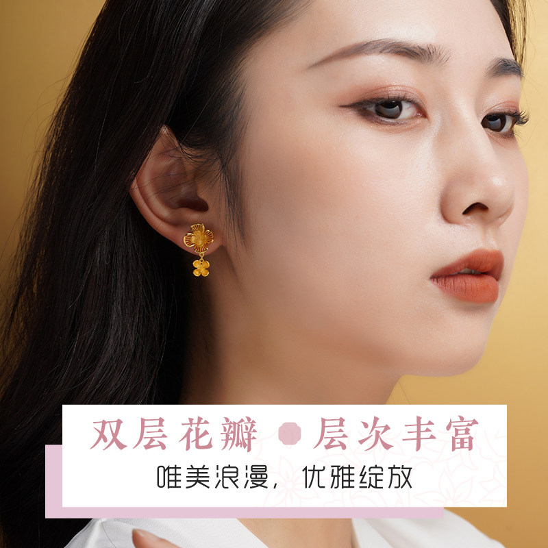 老庙黄金足金999丁香花开耳环耳饰花朵花卉花丝女士情侣