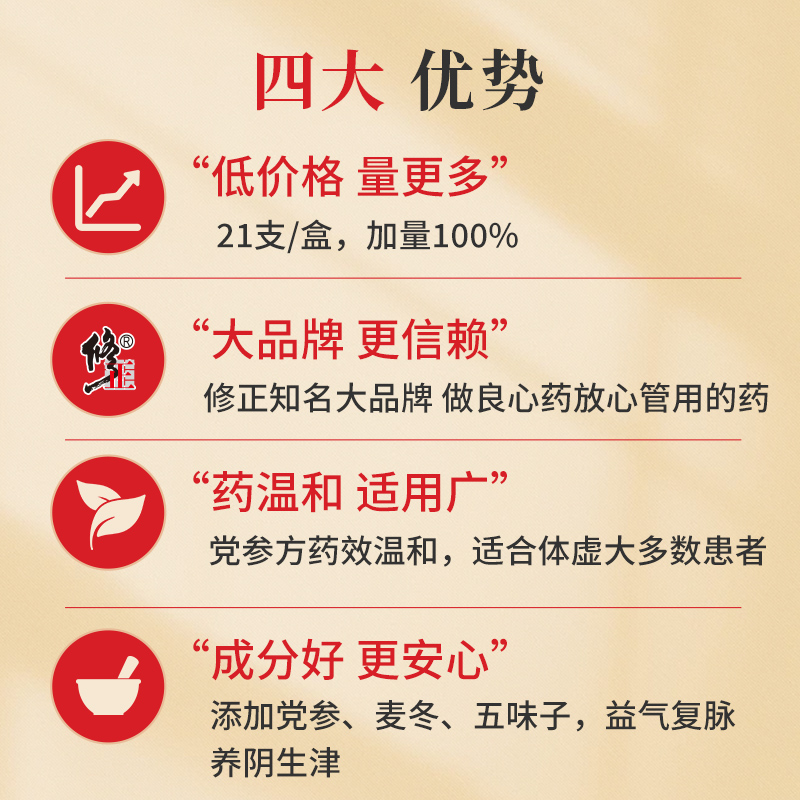 修正生脉饮党参方党参口服液21支参脉饮补气血黄芪补气官方旗舰店