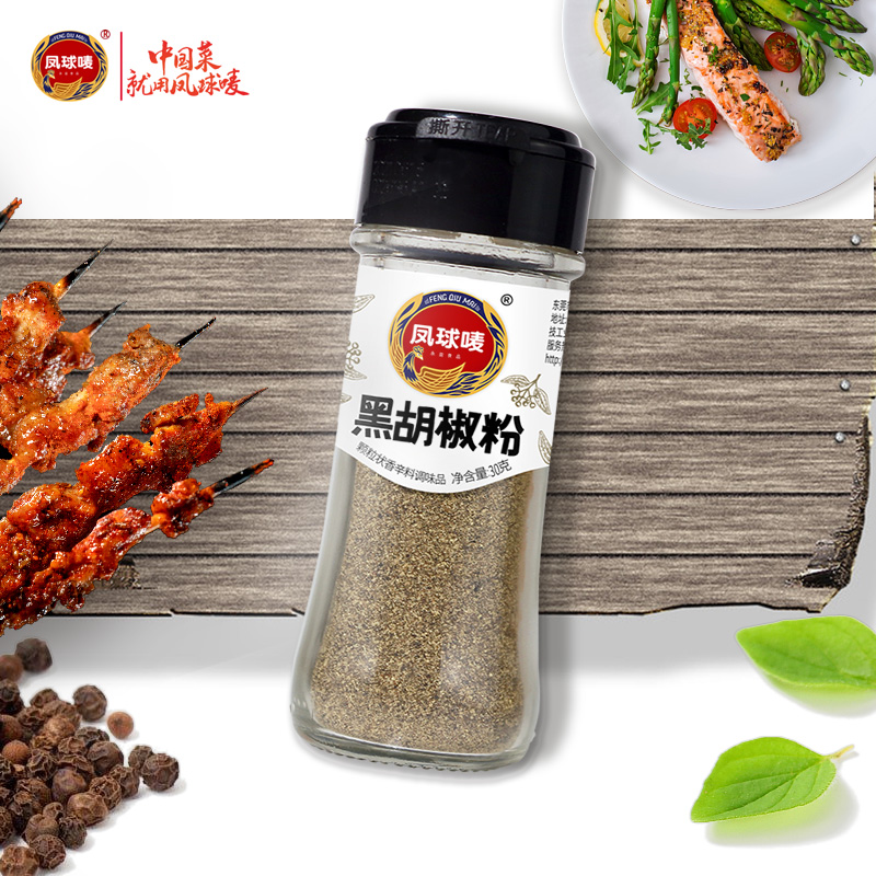 凤球唛 黑胡椒粉30g正宗香辛料调料烧烤烹饪细黑撒料商用腌料蘸料