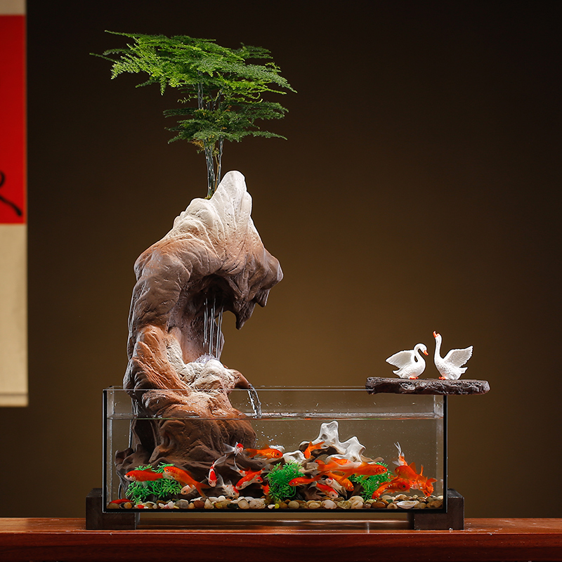 创意客厅流水生财摆件装饰招财循环水办公区桌面鱼缸开业乔迁礼品