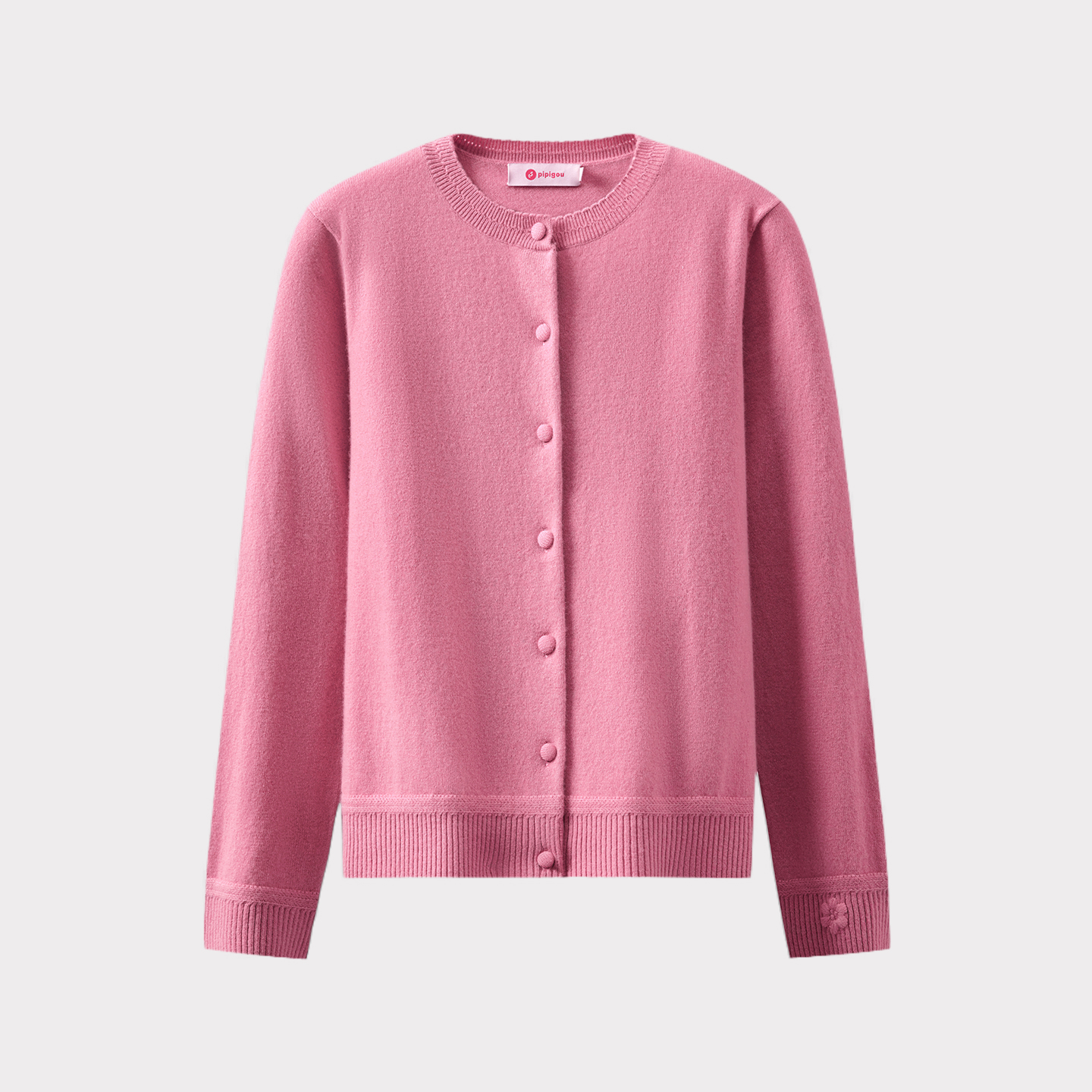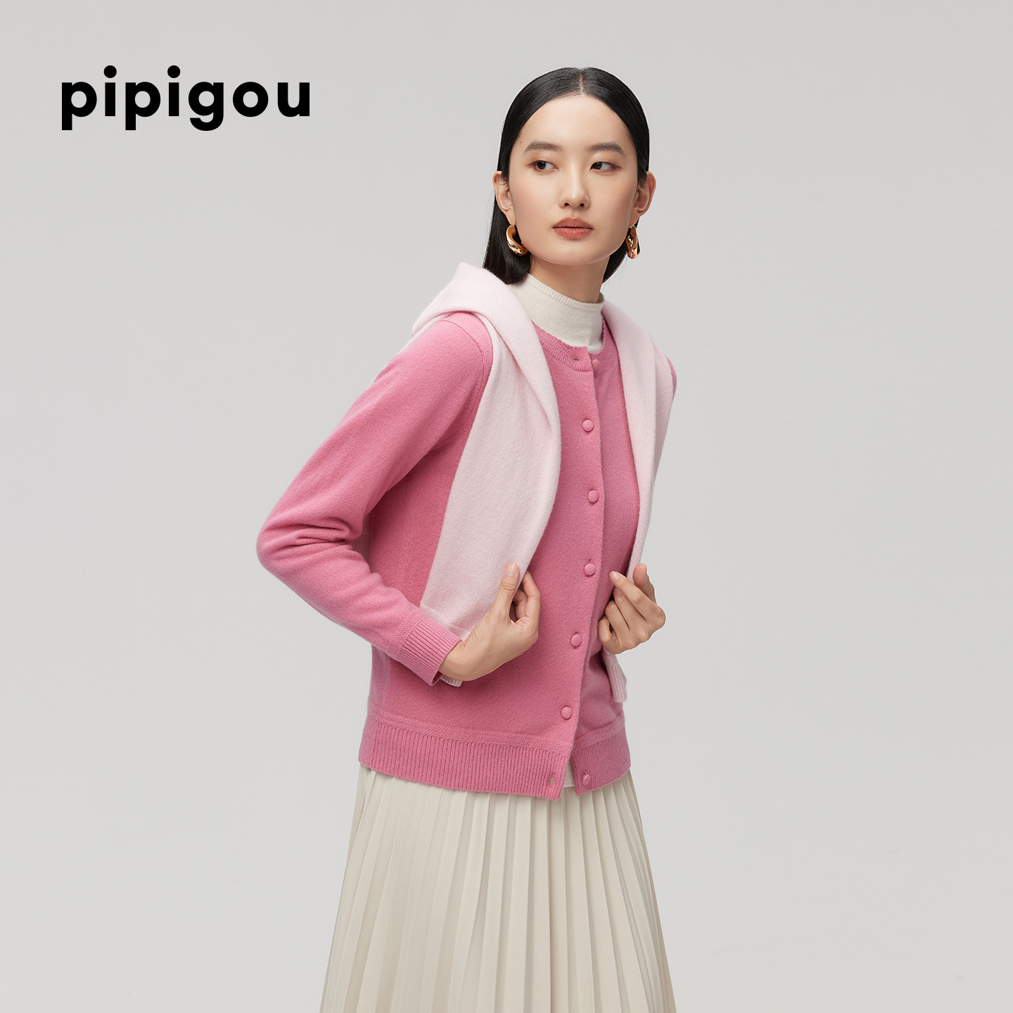 皮皮狗25秋冬新款圆领纯羊绒纽扣开衫女针织外套商场同款