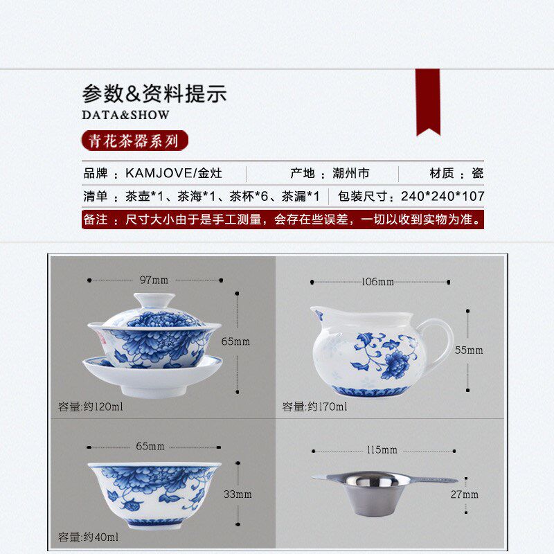 金灶kpa-95工夫茶具套装青花瓷泡茶套装整套茶具陶瓷品茗杯新品
