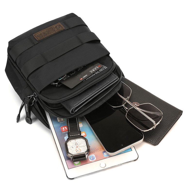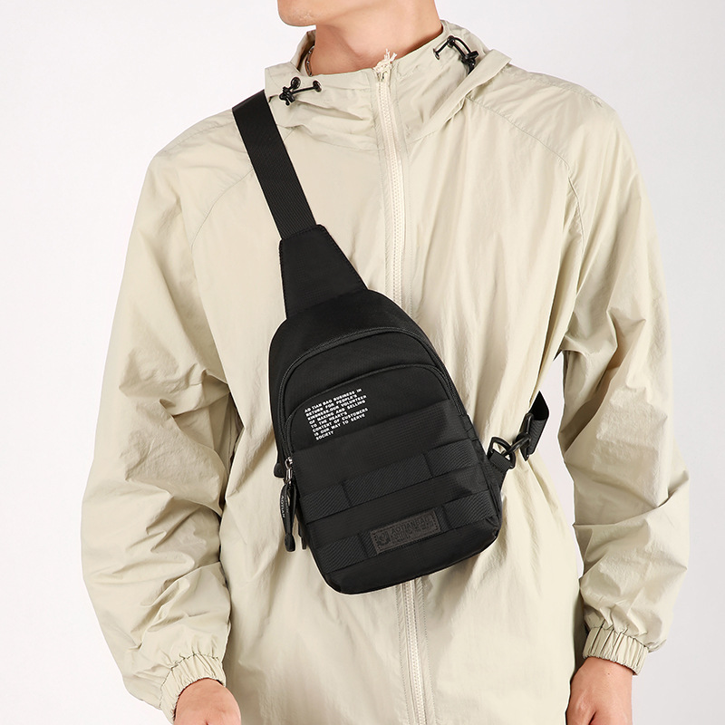 胸包男款男士运动休闲胸前包帆布单肩小背包牛津布黑色斜挎包男