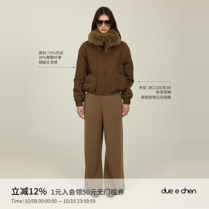 DUE E CHEN 复古双层大毛领加厚棉服女冬季新款小众设计短款外套