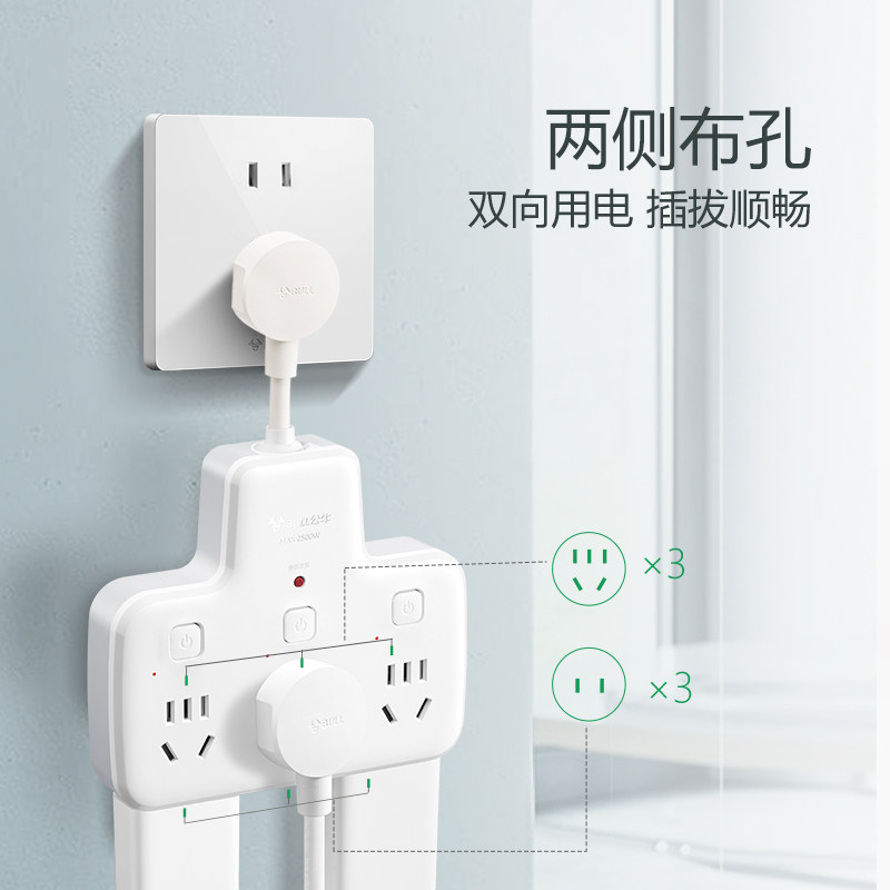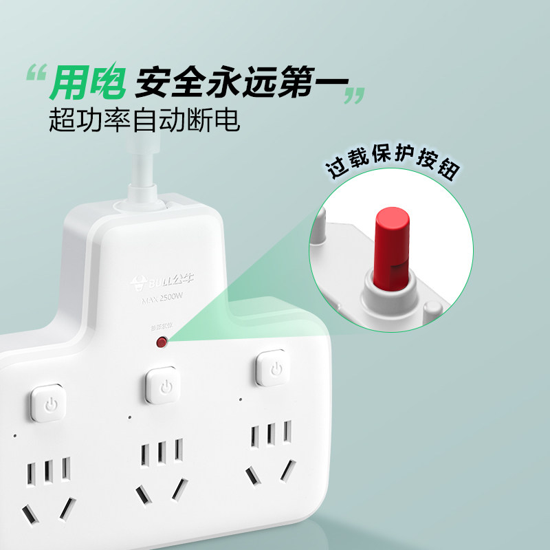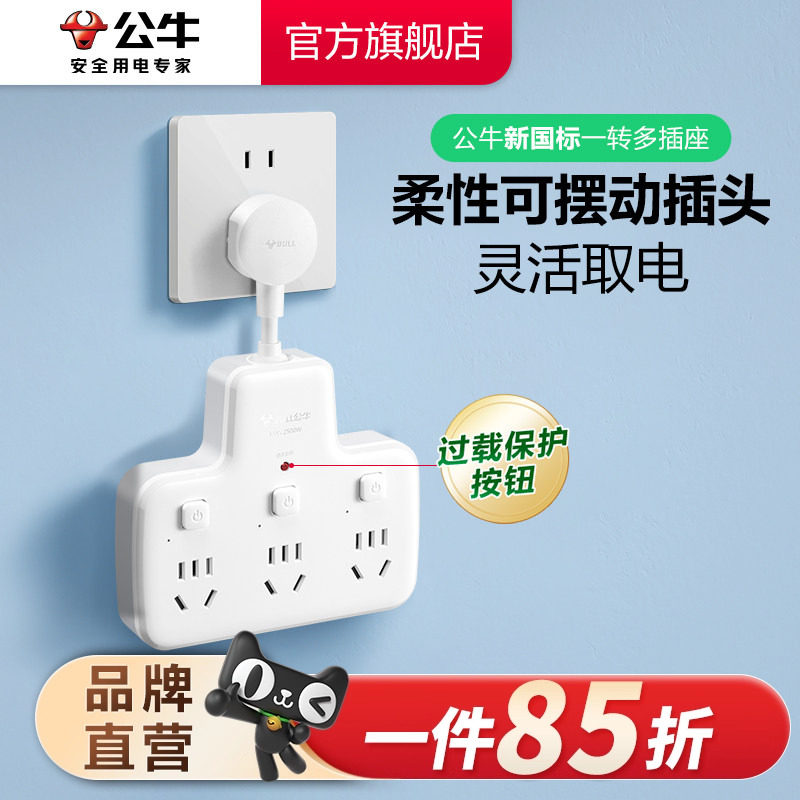 公牛插座转换器一转六多孔电源插头多功能插线板插排插头97333