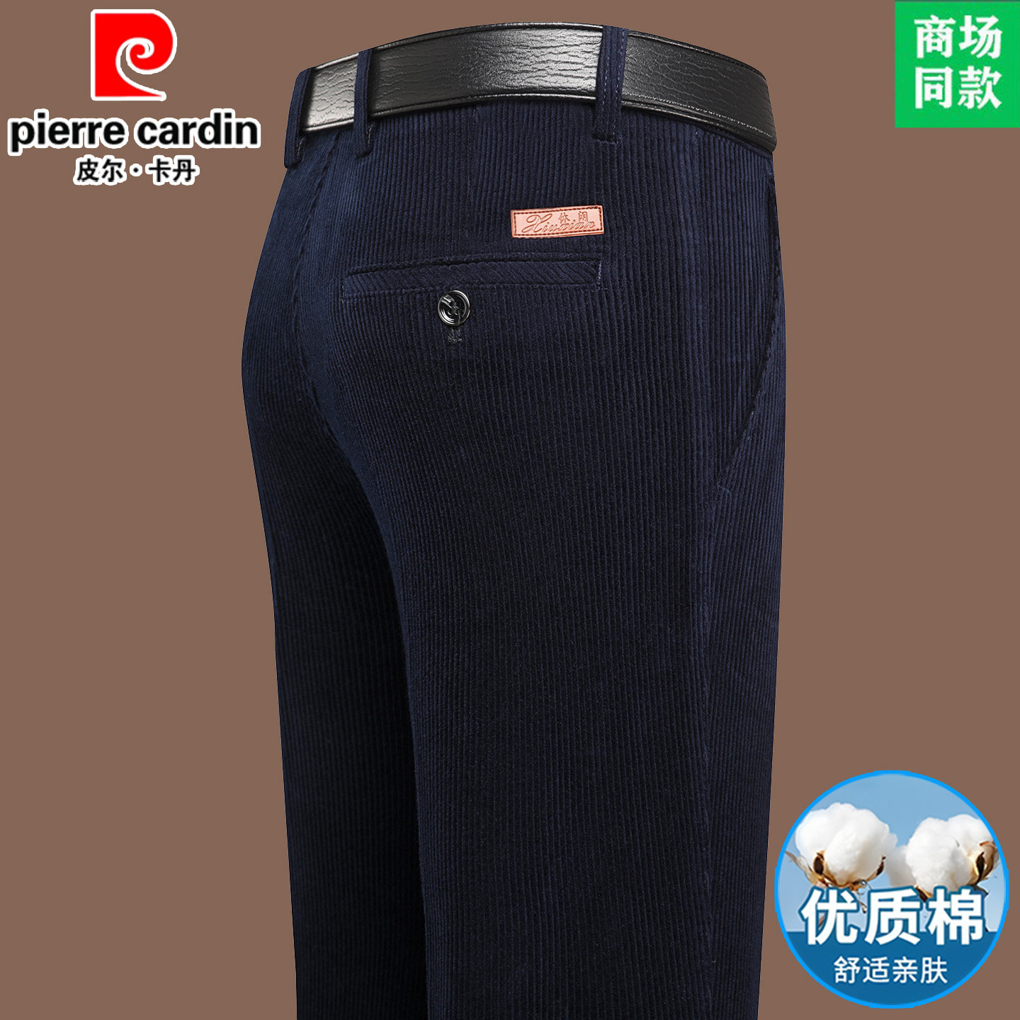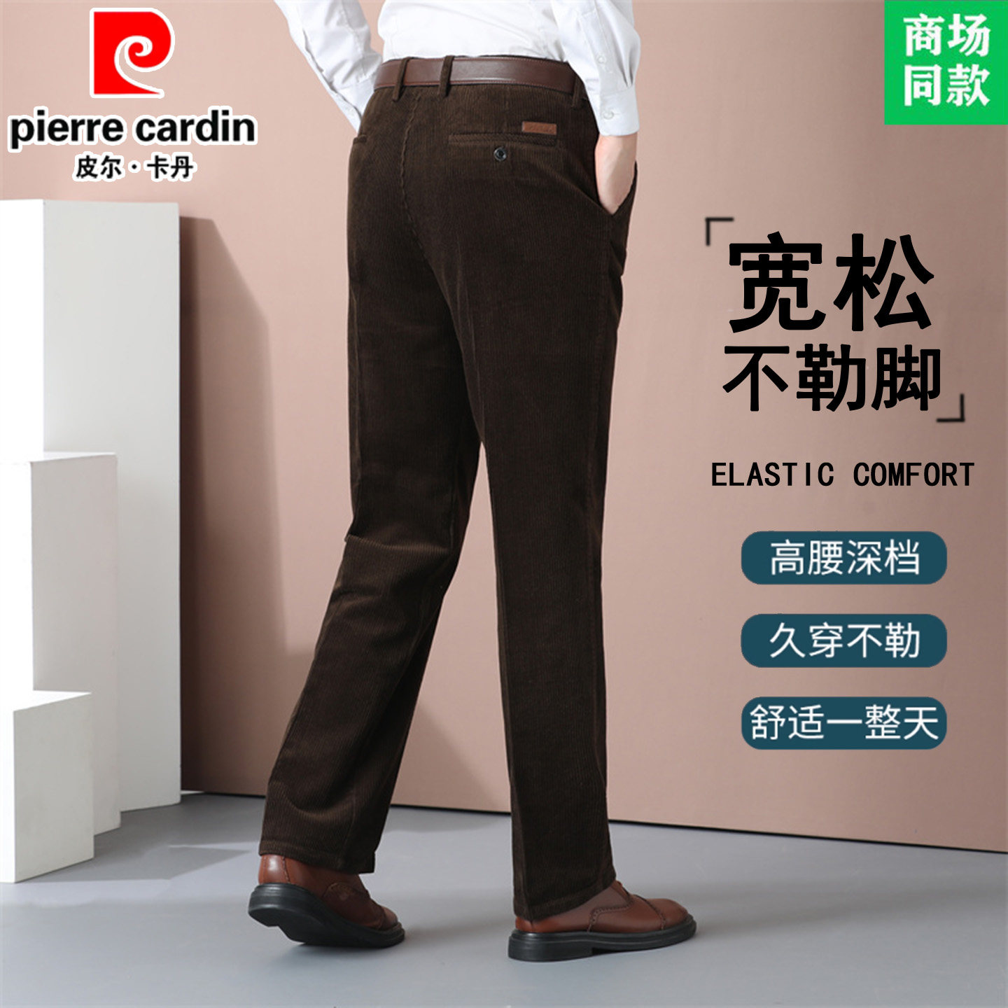 皮尔卡丹纯棉灯芯绒男士休闲裤秋冬高腰商务宽松直筒爸爸条绒男裤