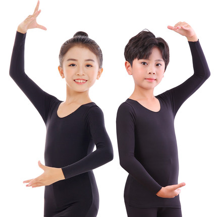 儿童黑色打底衣紧身弹力男童上衣T恤女童舞蹈打底衫拉丁舞服秋衣