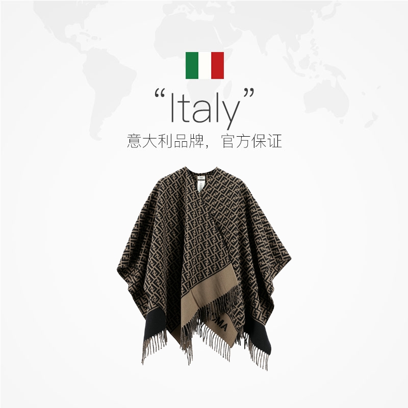 【自营】Fendi芬迪 女士保暖流苏斗篷披肩135*135cm FXX723 AQCW