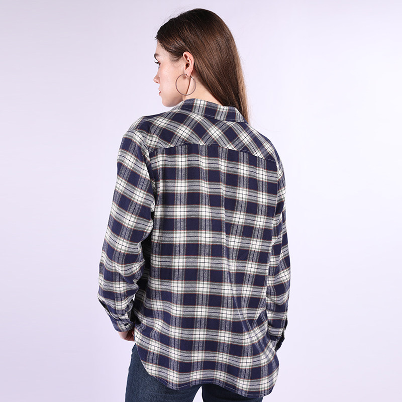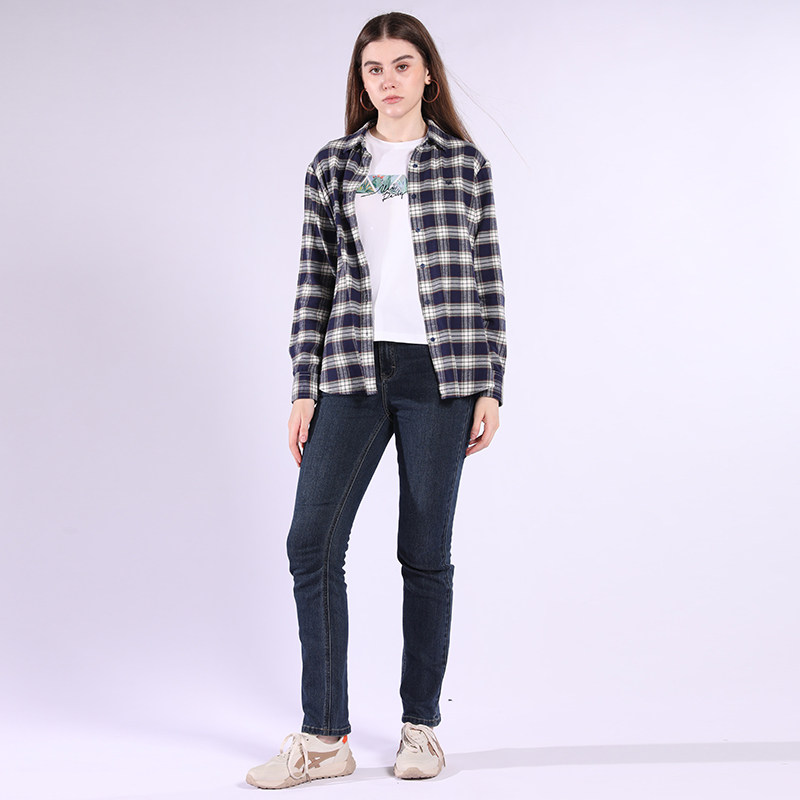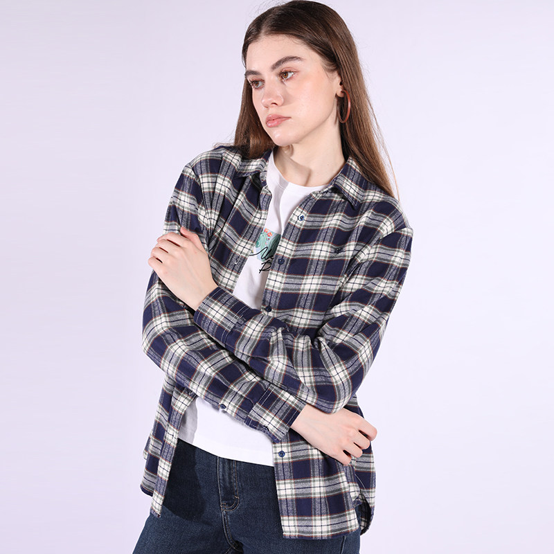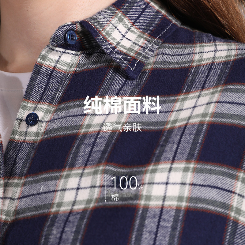[纯棉磨毛]威鹏格子衬衫女25秋季保暖蓝色复古经典休闲格纹H43058