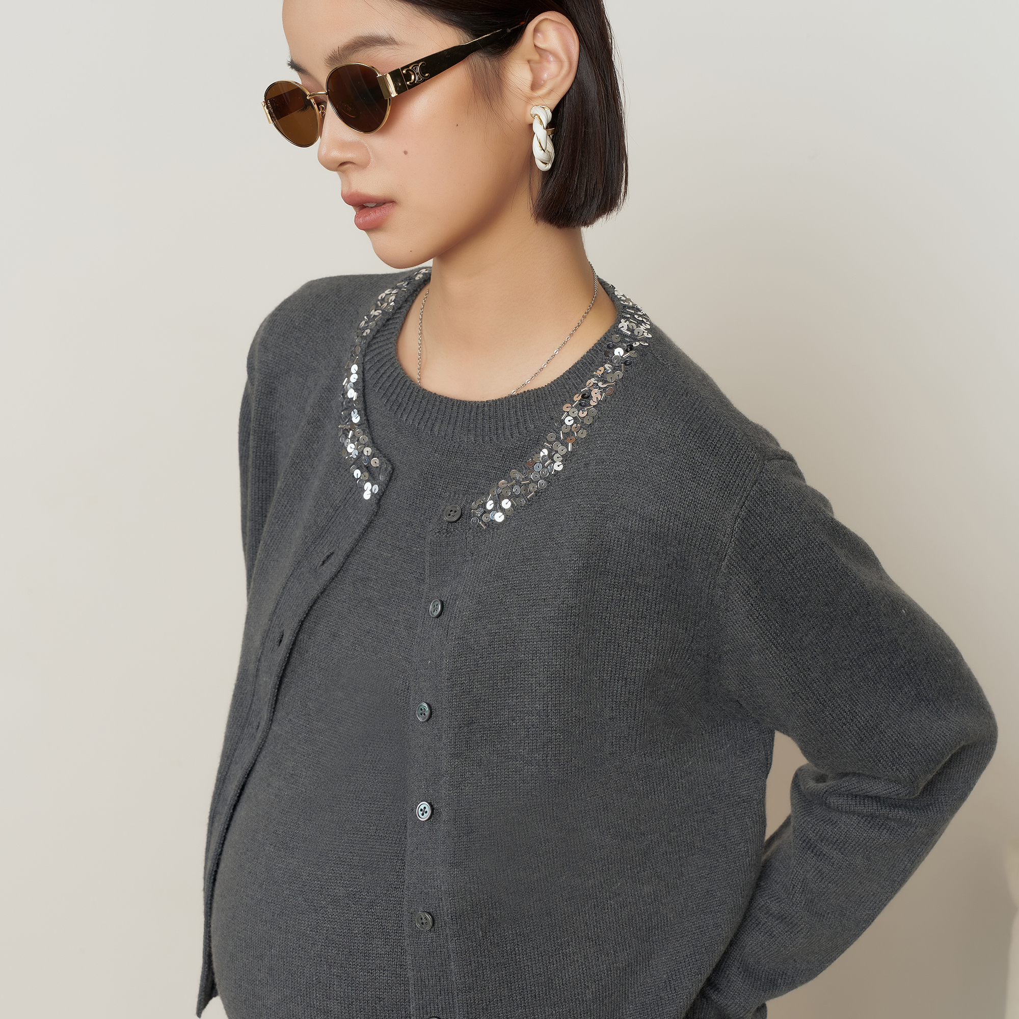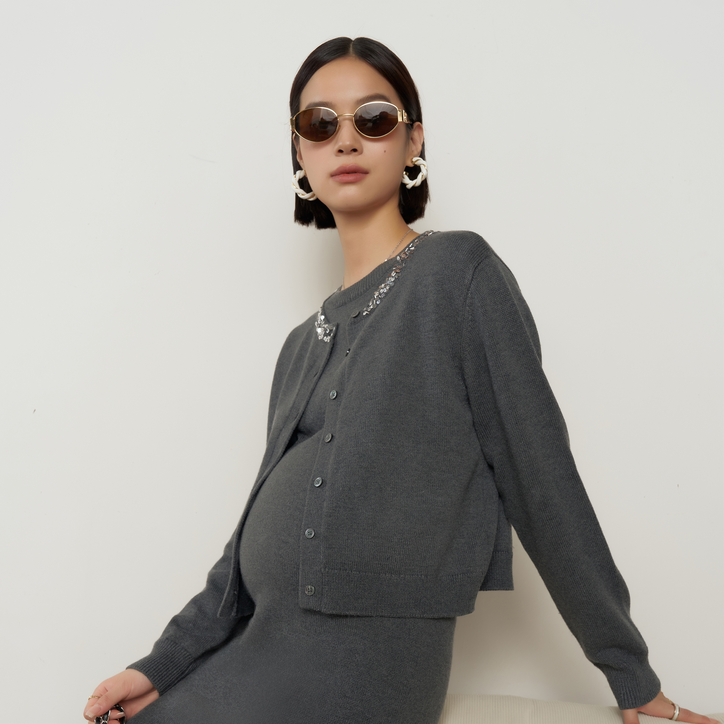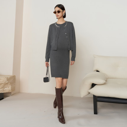 BELLYWEAR孕妇装套装春秋时尚手工订珠高级感连衣裙针织开衫套装