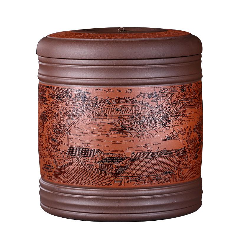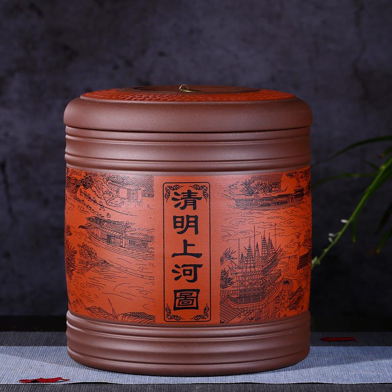 紫砂茶叶罐普洱茶饼罐七饼普洱罐清明上河图非陶瓷大号茶叶桶家用