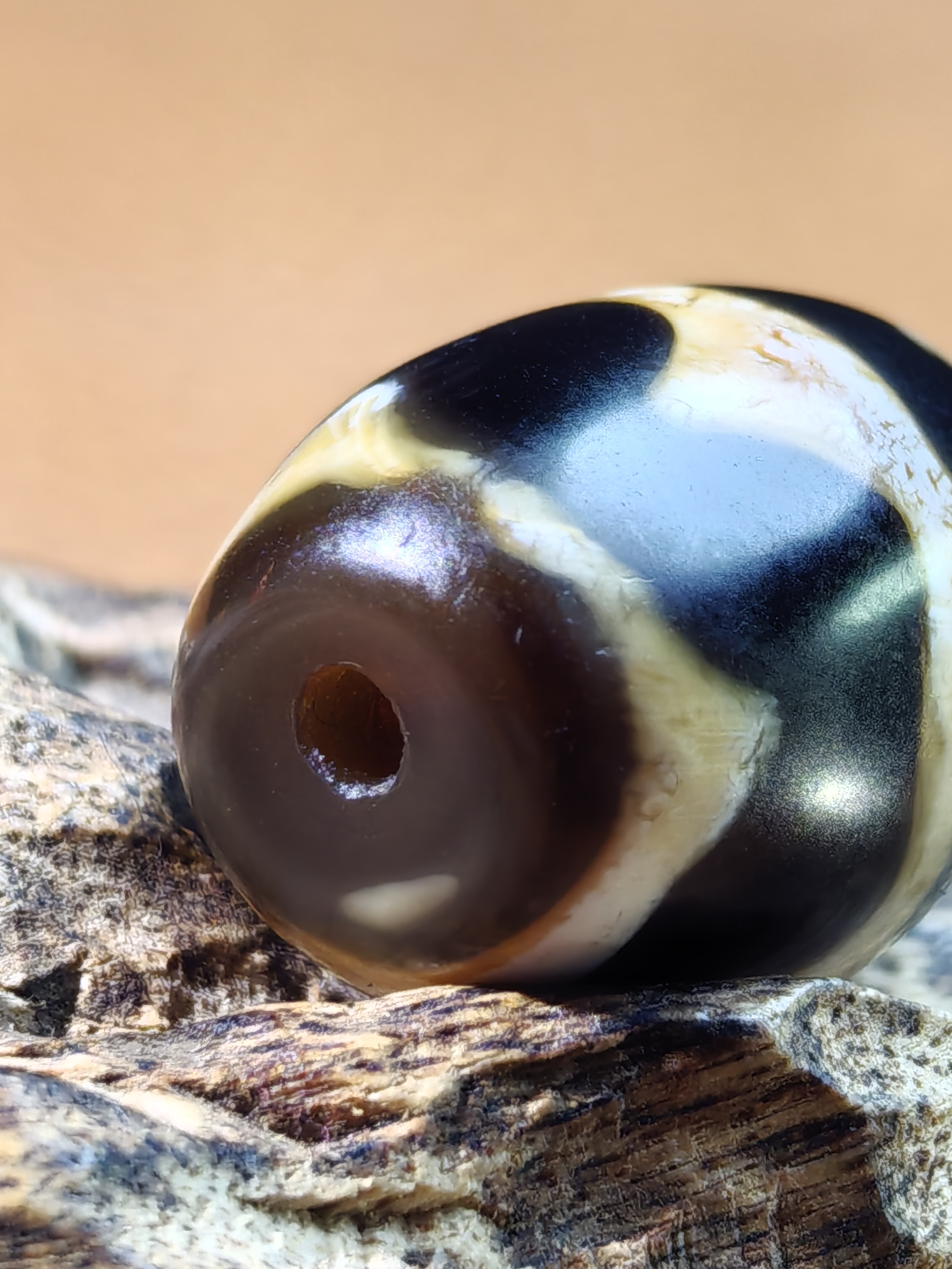 无界双虎牙达洛天珠藏传九眼石页岩玉髓玛瑙玉髓油沁钙化老气