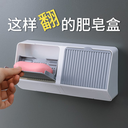 肥皂盒壁挂沥水免打孔网红创意翻盖双层卫生间香皂架家用学生宿舍