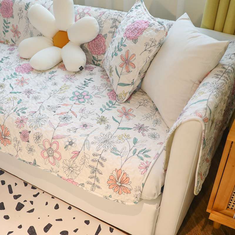 雨朵 夕颜小清新碎花纯棉中式沙发垫防滑四季通用沙发巾套坐垫子