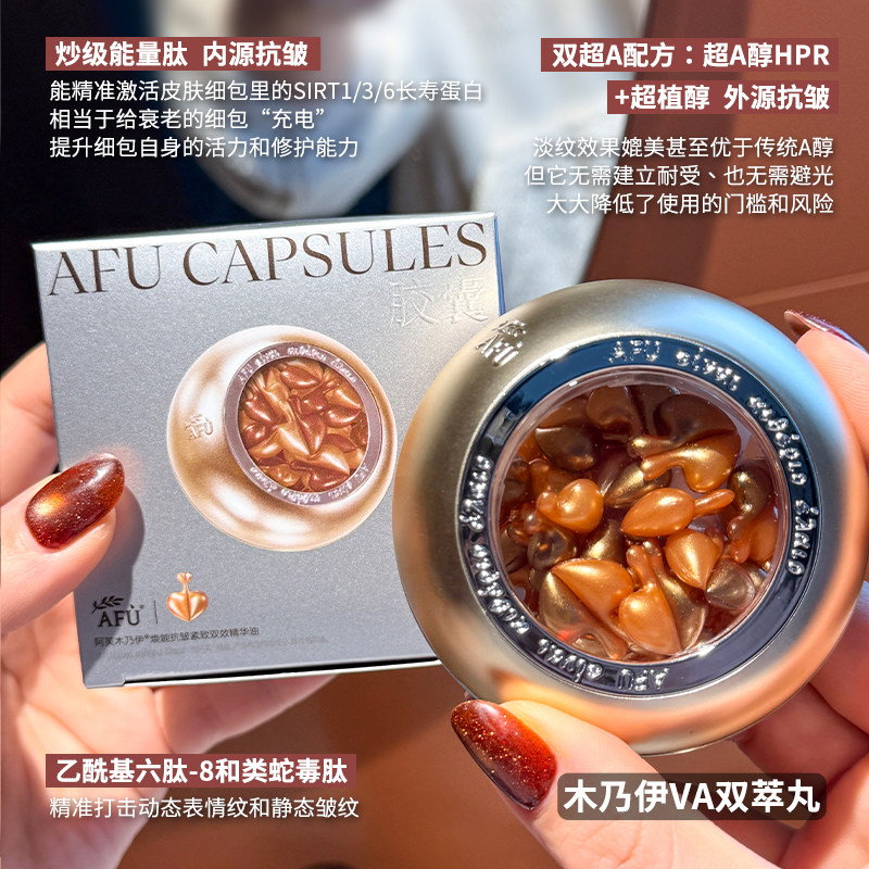 新品 双萃丸子!AFU阿芙木乃伊VA胶囊玫瑰丸VC精华油早C晚A超A醇