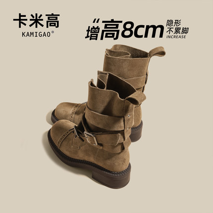 8cm内增高马丁靴女2025新款秋季厚底粗跟美拉德堆堆靴棕色短靴子
