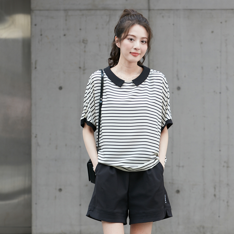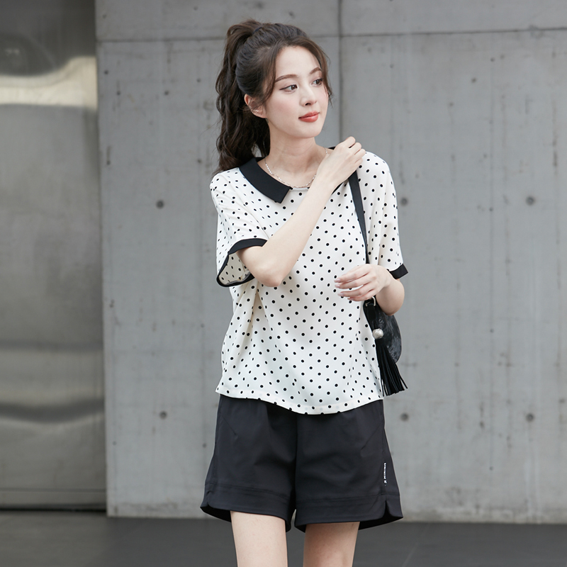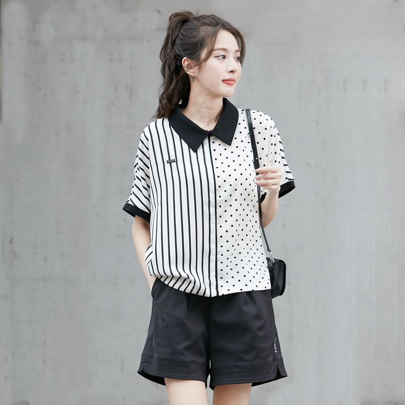 2025夏装女士t恤半袖时尚轻奢高级感条纹雪纺减龄衬衫短袖上衣