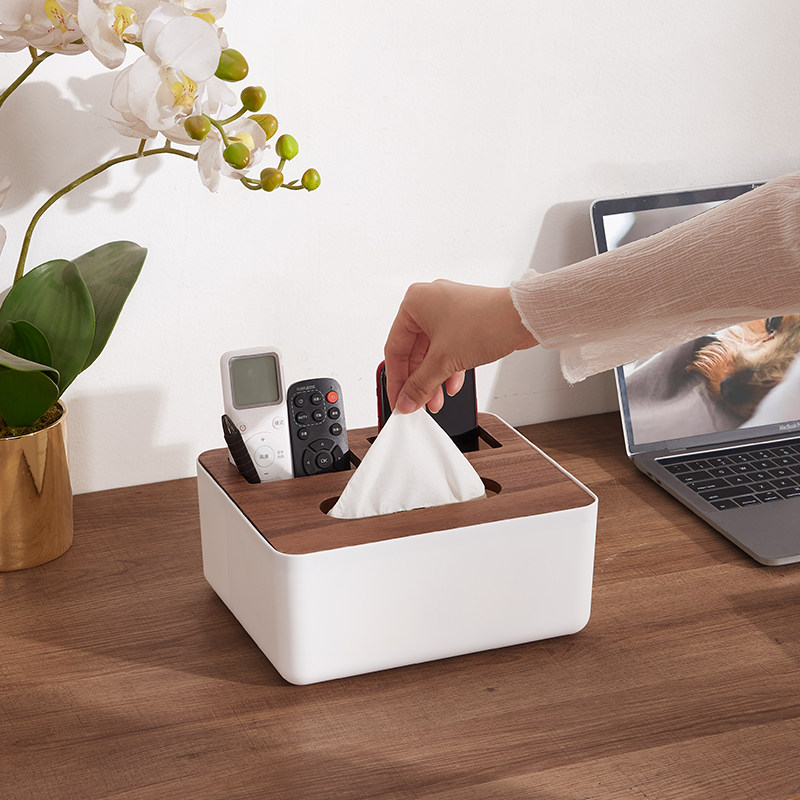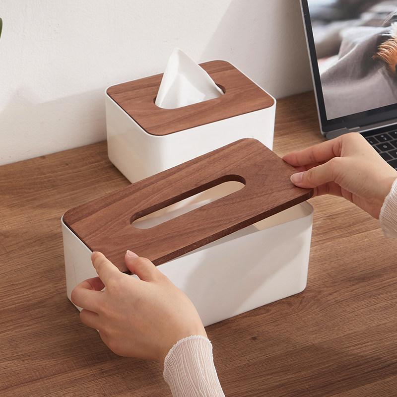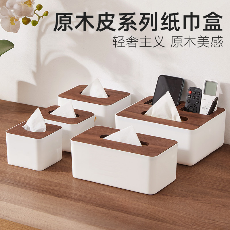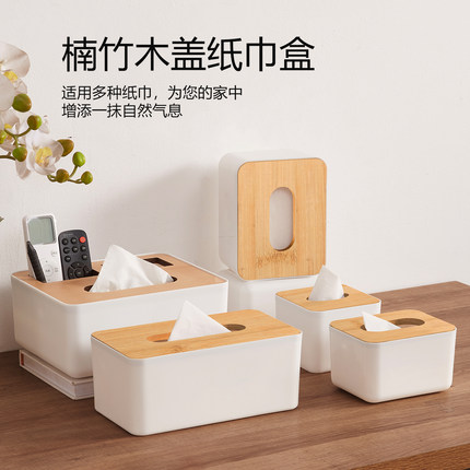 竹木盖塑料纸巾盒餐厅酒店抽纸盒客厅带盖纸巾盒胡桃木桌面纸抽盒
