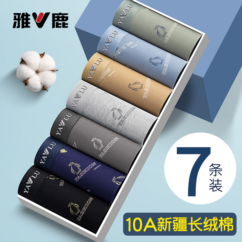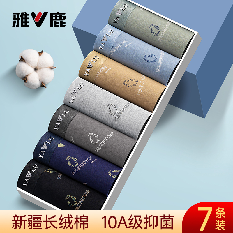 雅鹿男士内裤男生纯棉平角裤透气抑菌男式四角短裤衩学生正品新款