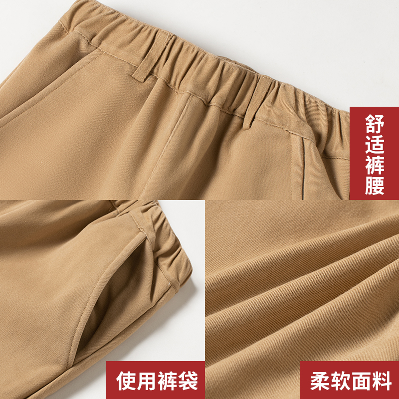 卡其色加绒加厚校服裤子儿童校裤