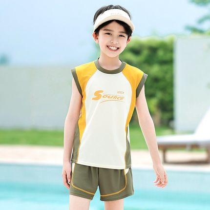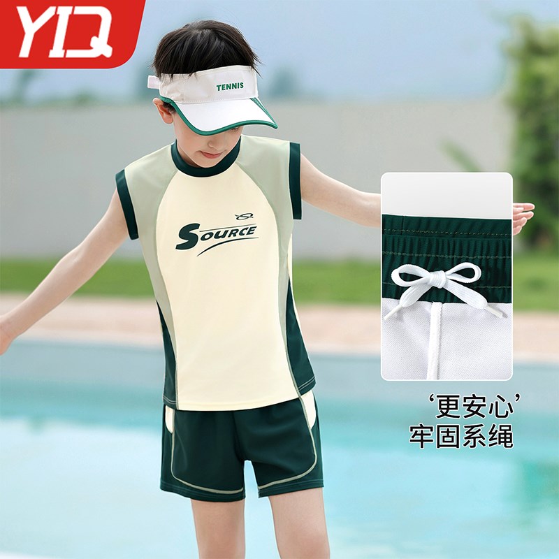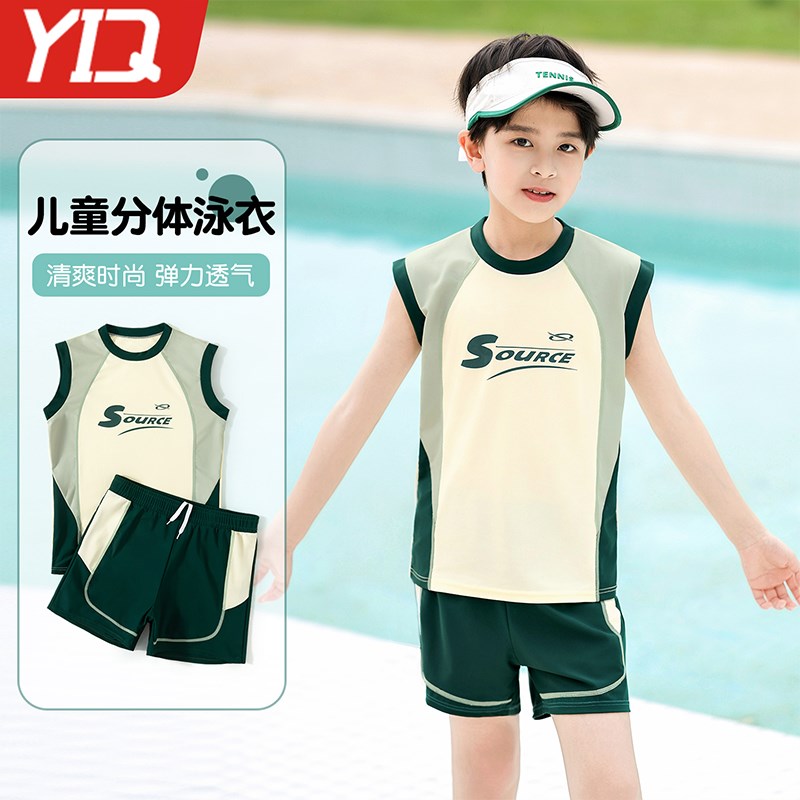 儿童泳衣男童2025新款分体无袖中大童青少年男孩专业训练游泳套装