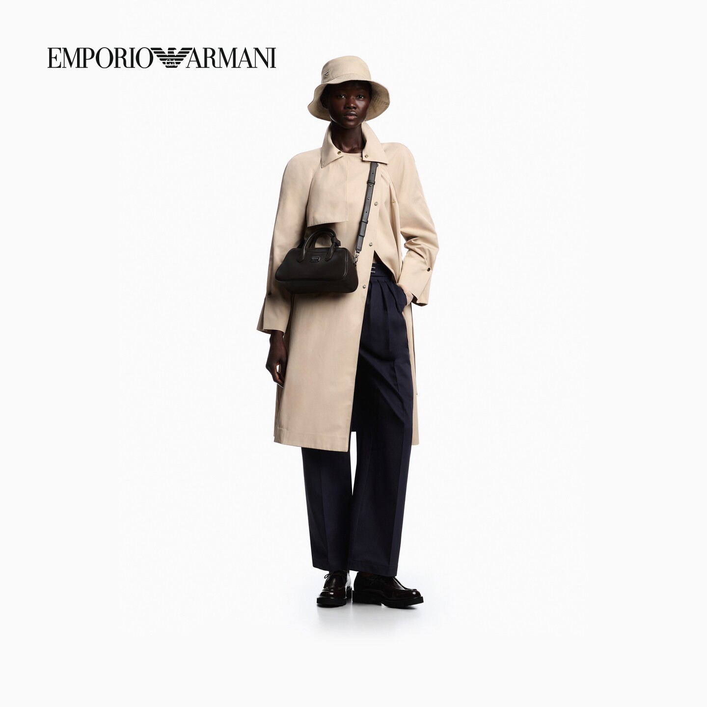 阿玛尼女士长款翻领配腰带风衣