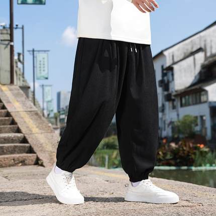 太极裤男中国风春秋大码武术练功裤阔腿宽松灯笼裤灯芯绒功夫长裤