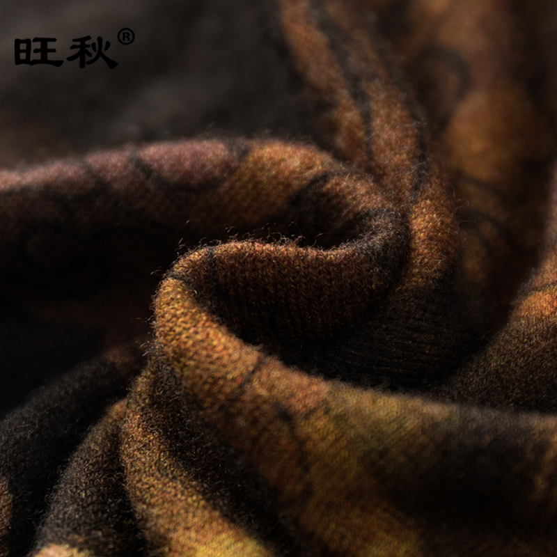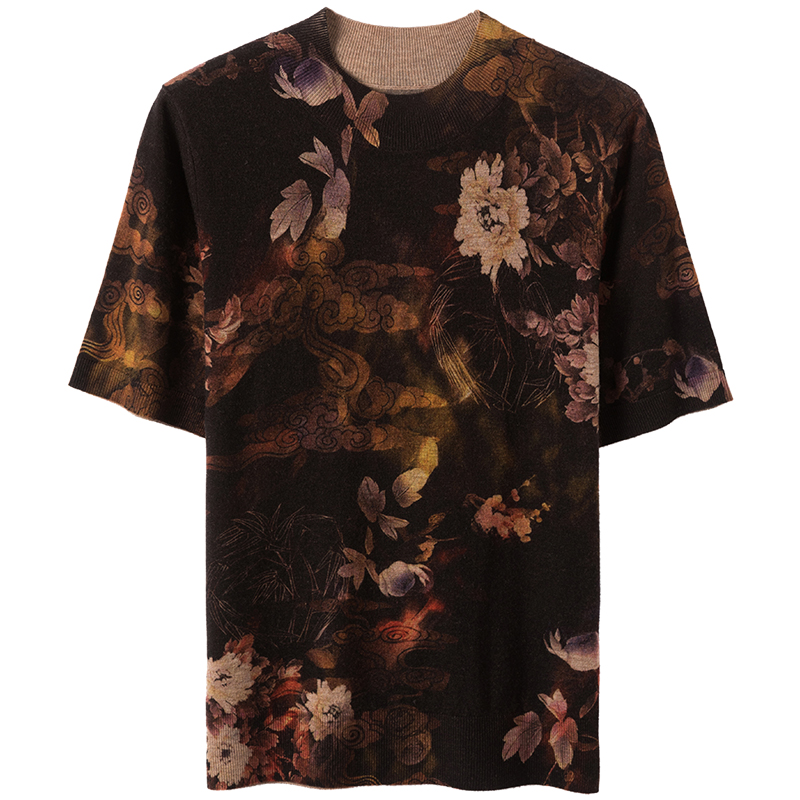 旺秋新款中袖针织衫女气质上衣百搭印花中年妈妈毛衣打底羊毛衫薄