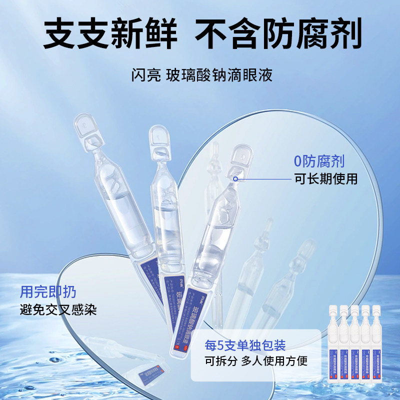 闪亮玻璃酸钠滴眼液眼药水人工泪液眼干缓解视疲劳模糊干眼症专用
