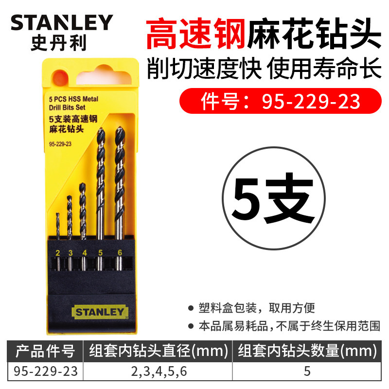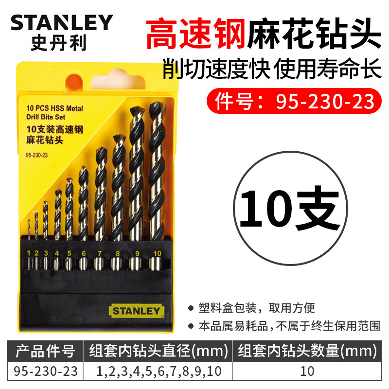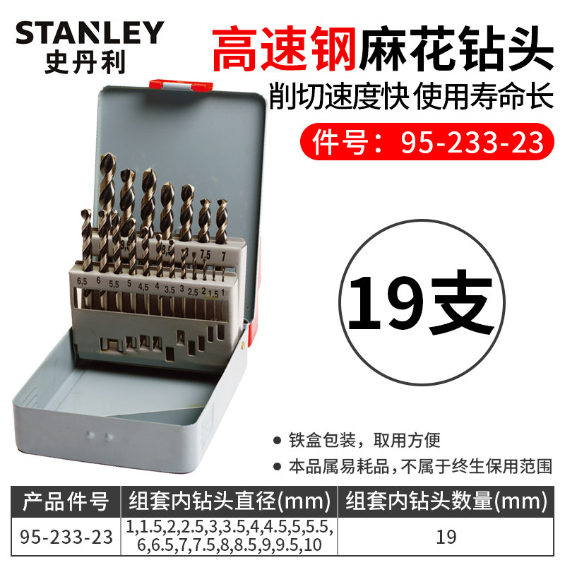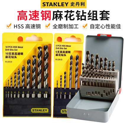 史丹利高速钢麻花钻套装不锈钢金属打孔木工木材电钻头转头多功能