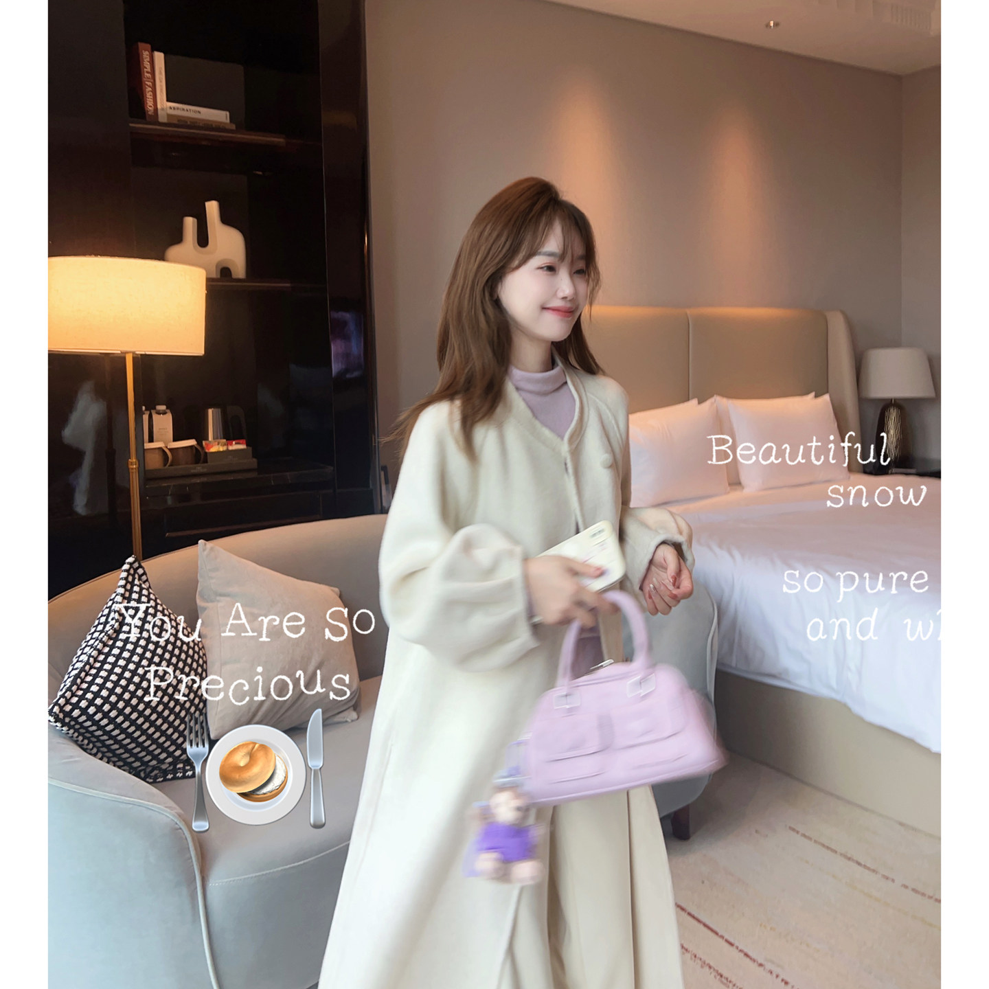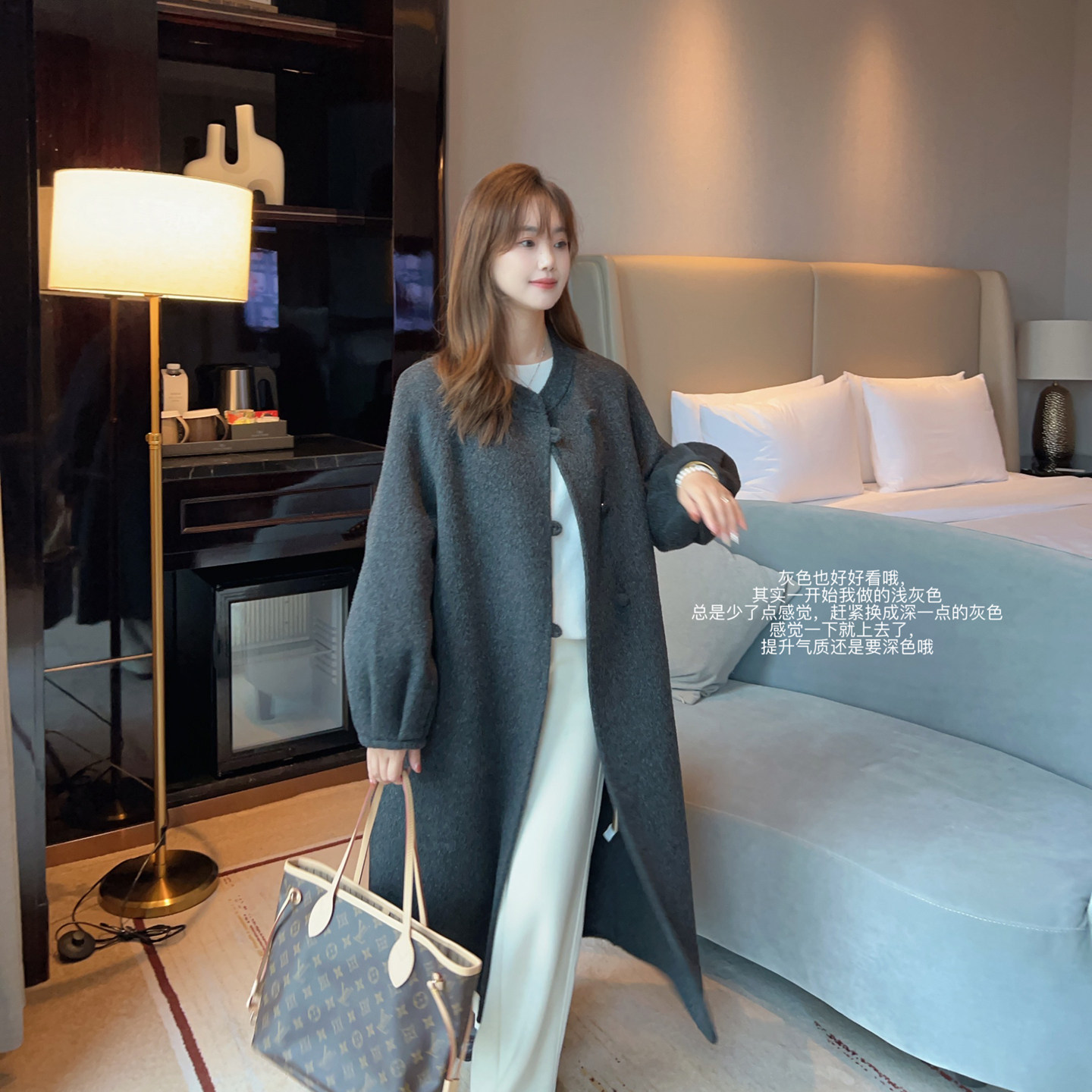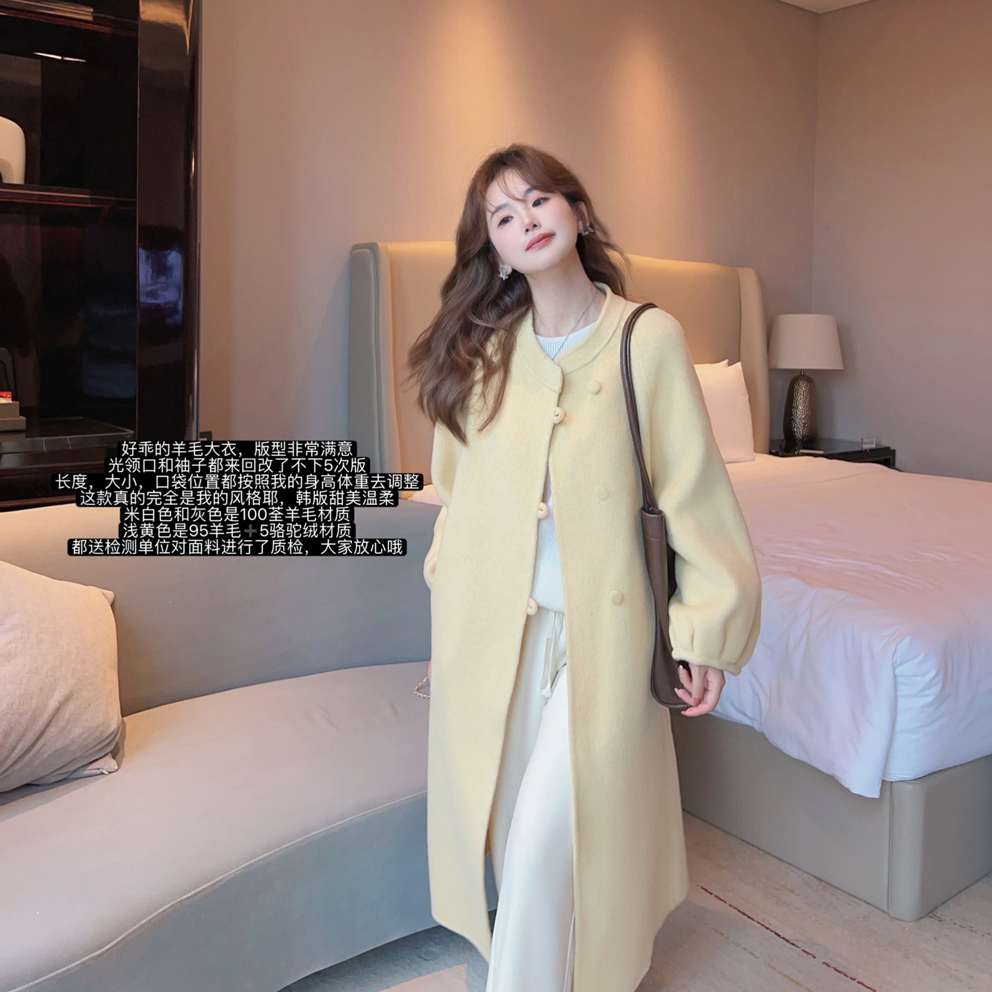 小小家 小个子小码圆领甜美羊毛大衣秋冬中长款双面呢保暖外套150