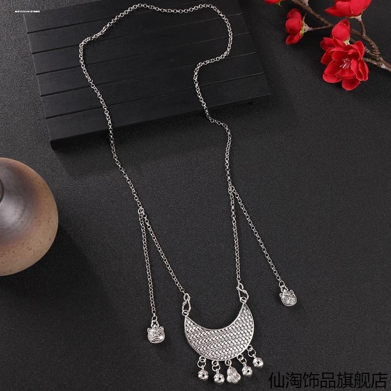 中式国风长款古银项链复古仿银长命锁流苏毛衣链旗袍汉服配饰女LK