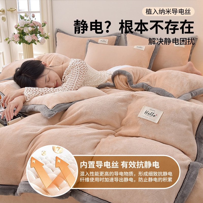 无印良品纯色牛奶绒四件套秋冬珊瑚绒床上三件套棉冬季加绒法兰绒