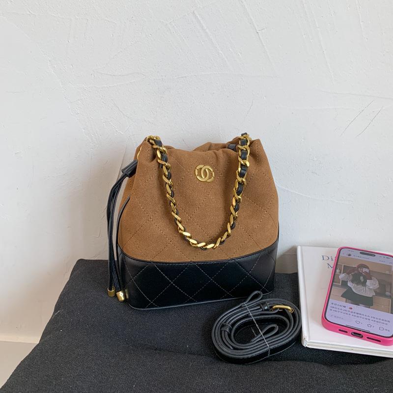 香港品牌托特包新款小香风复古菱格链条流浪包通勤大容量麂皮腋下