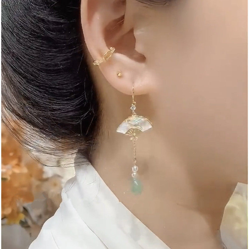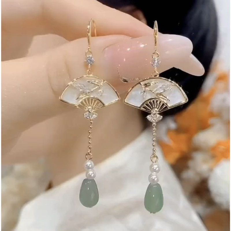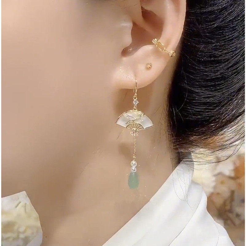 气质新中式扇形流苏耳环女时尚高级感耳钩耳坠2025年新款轻奢耳饰