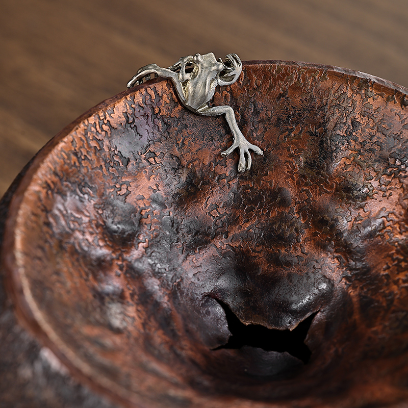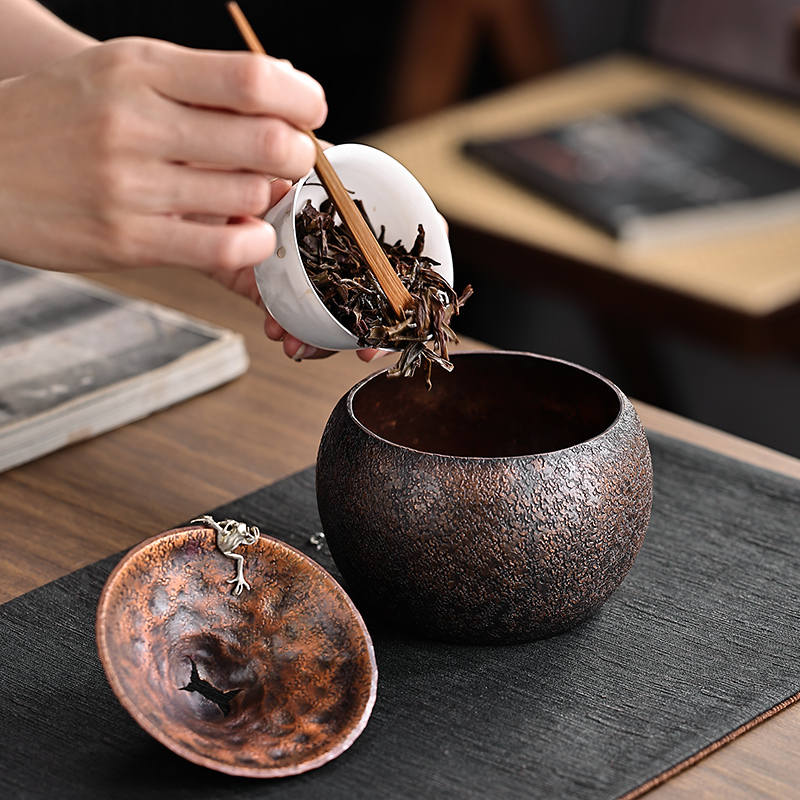 手工紫铜茶洗茶渣缸 建水高档水盂废水桶功夫茶具配件嵌银茶水缸