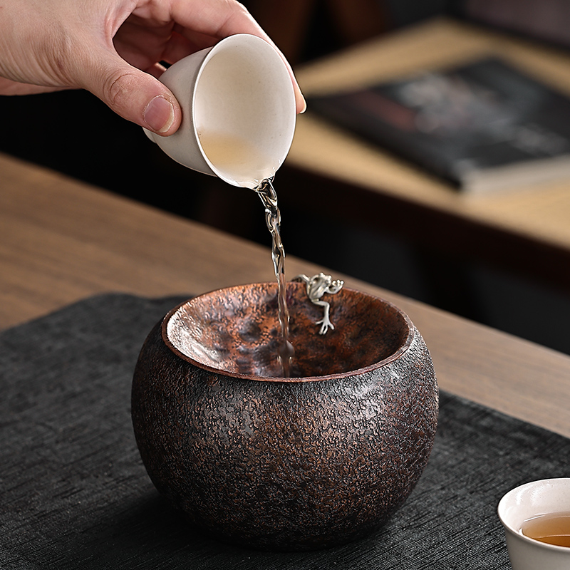 手工紫铜茶洗茶渣缸嵌银茶水缸