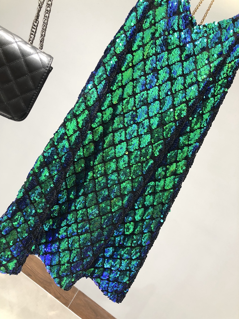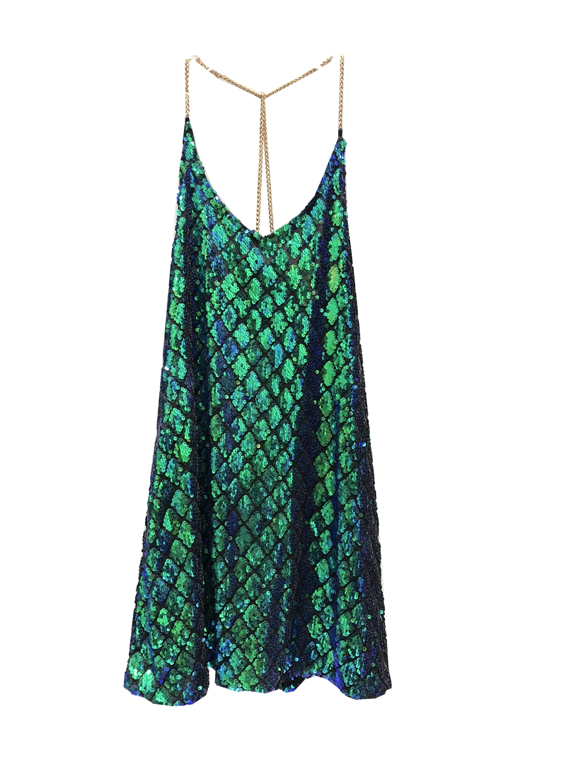 0金属挂脖亮片露背度假连衣裙