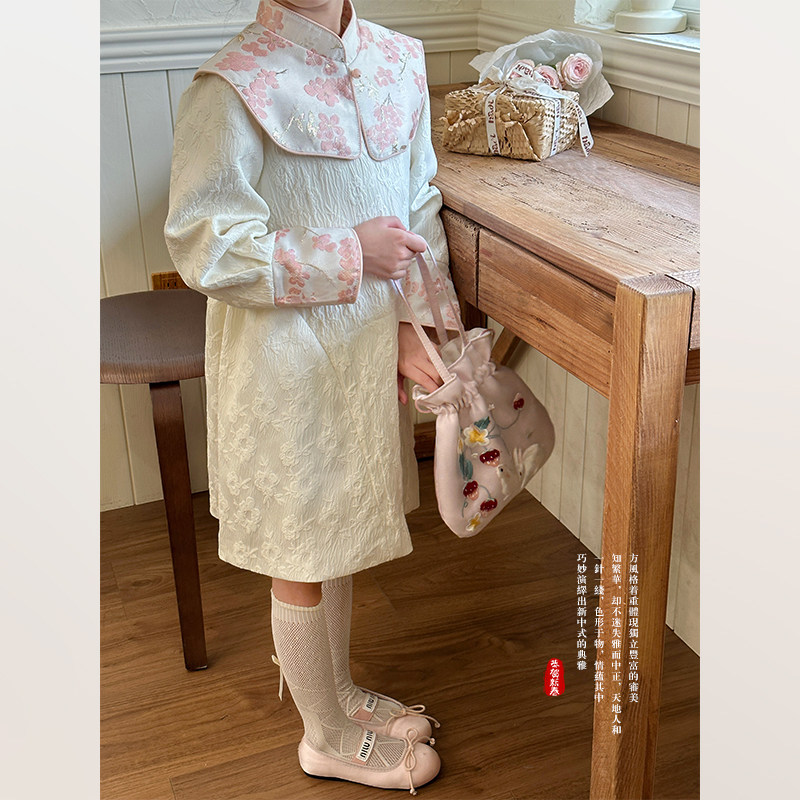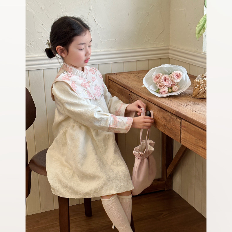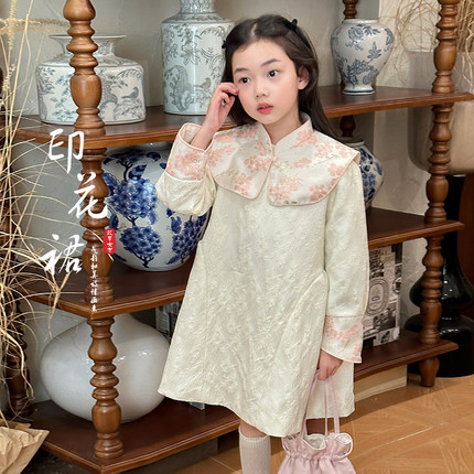 柒号童仓儿童中式高级刺绣连衣裙春装新款女中大童国风旗袍公主裙