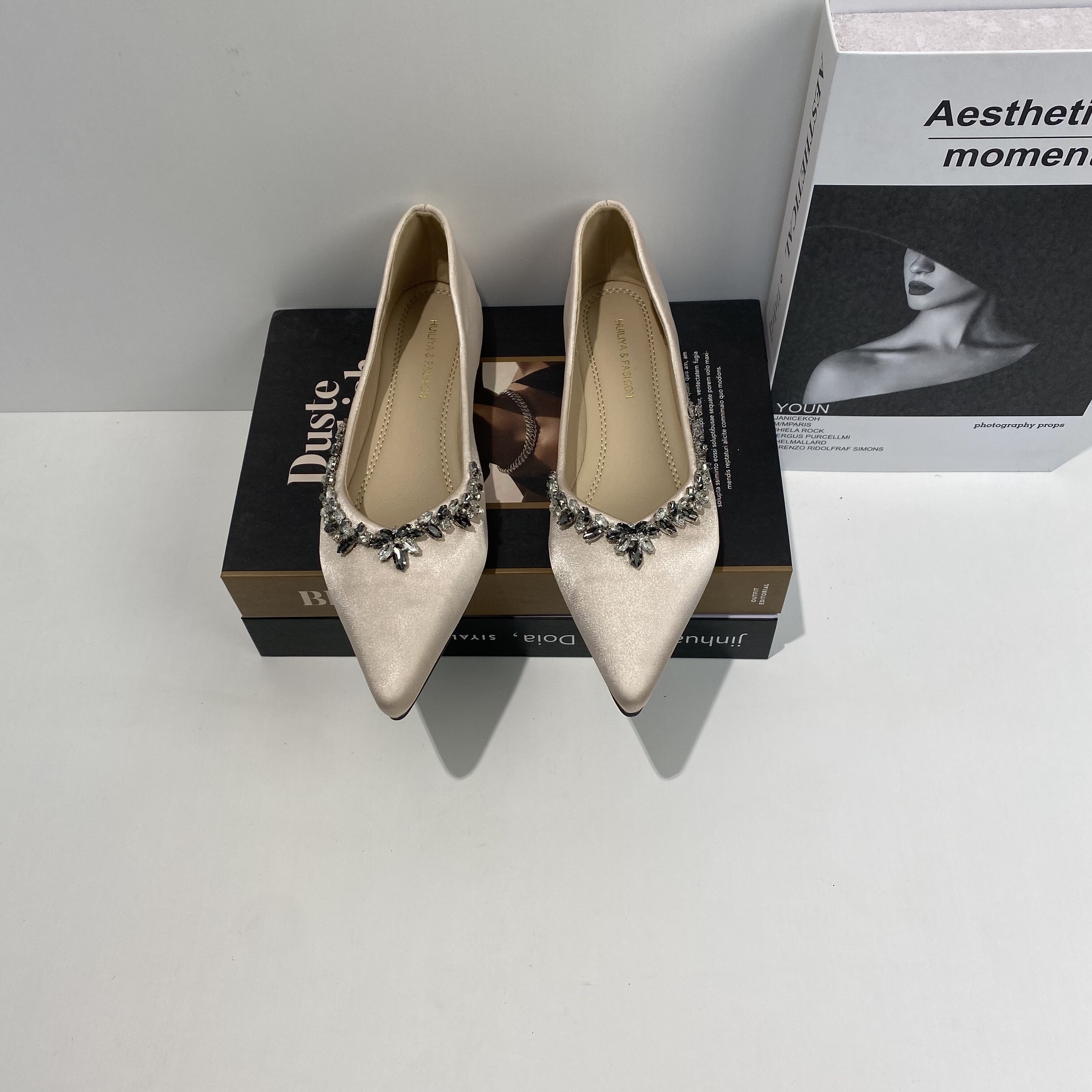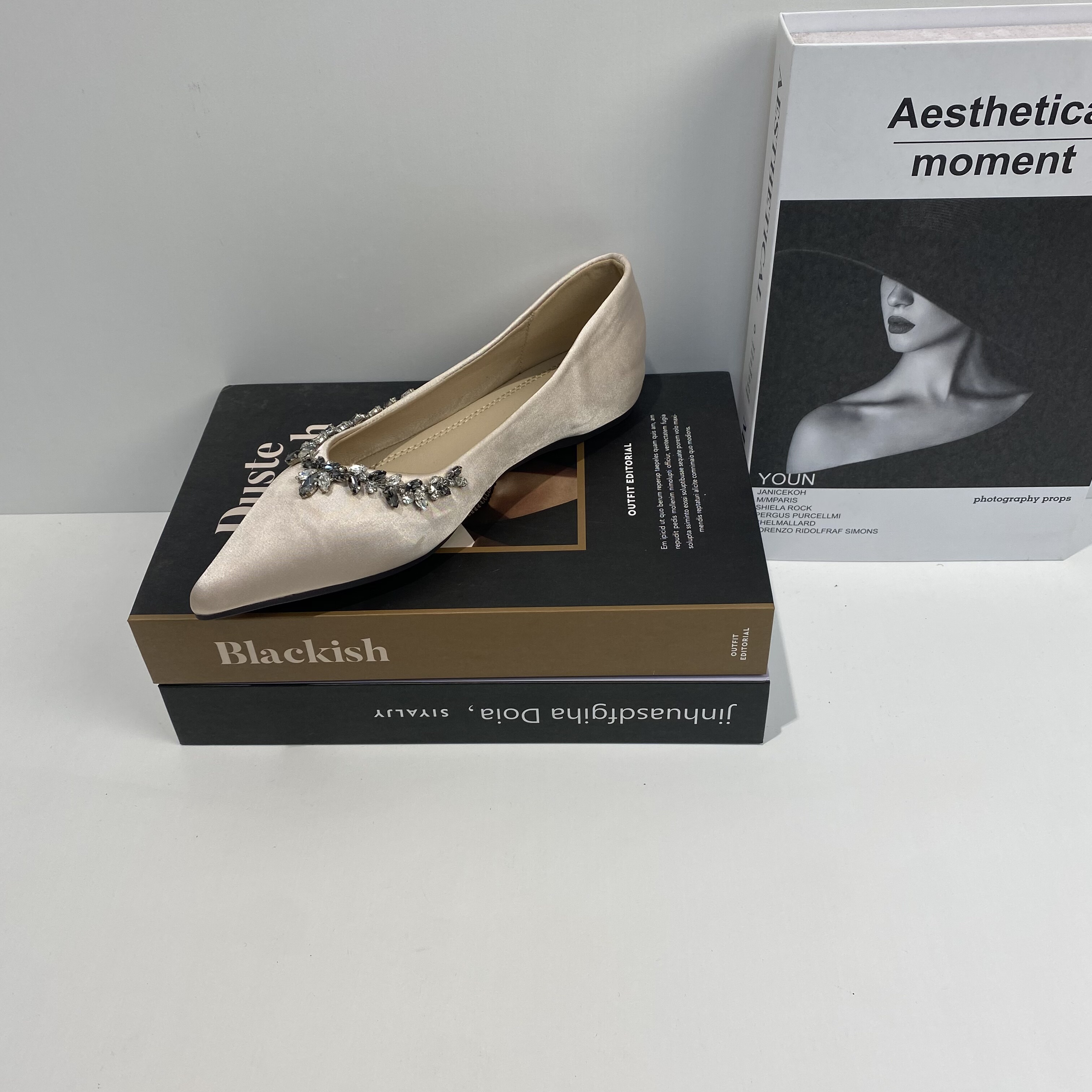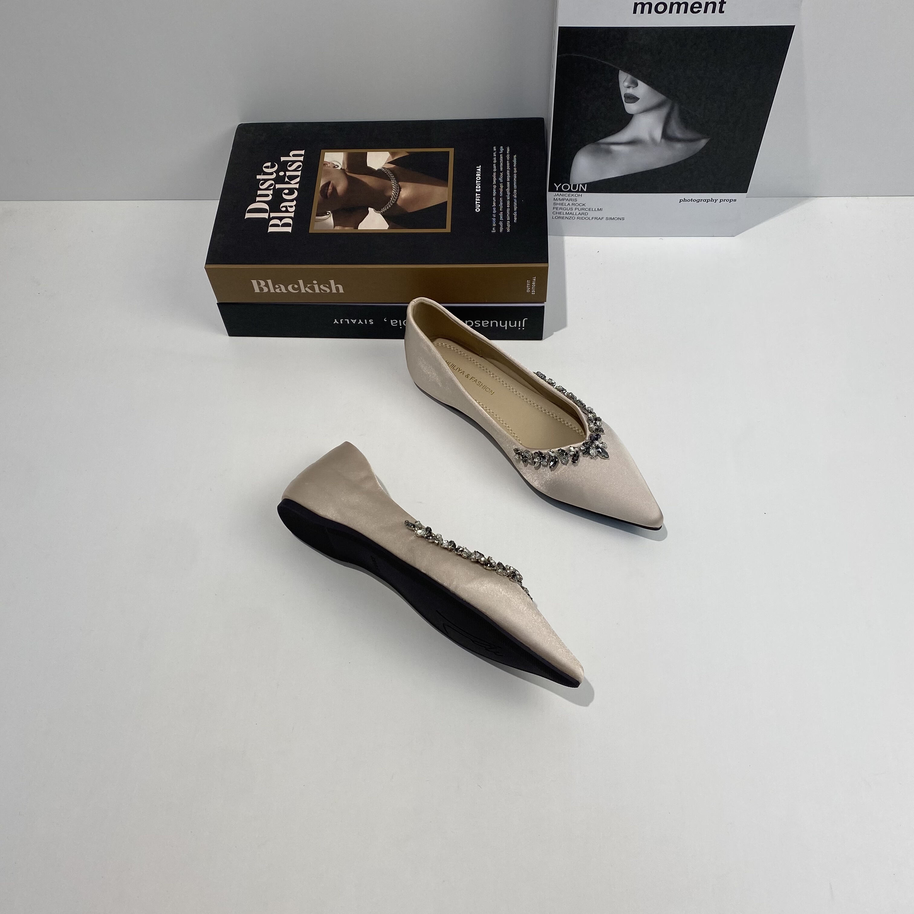 2026新款软底水钻链气质尖头浅口春秋款名媛女单鞋平底鞋女大码鞋