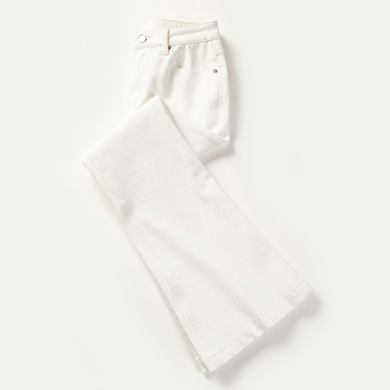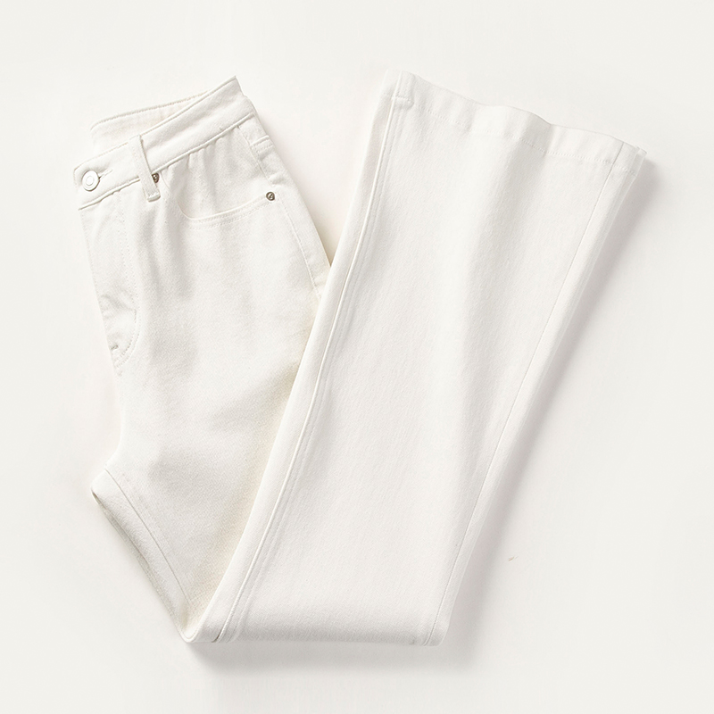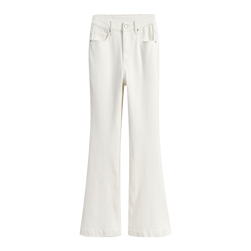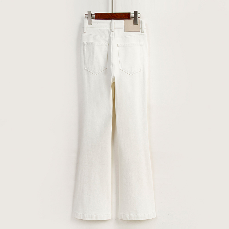 白色高腰微喇牛仔裤女小个子2025春秋新款显瘦弹力修身九分喇叭裤