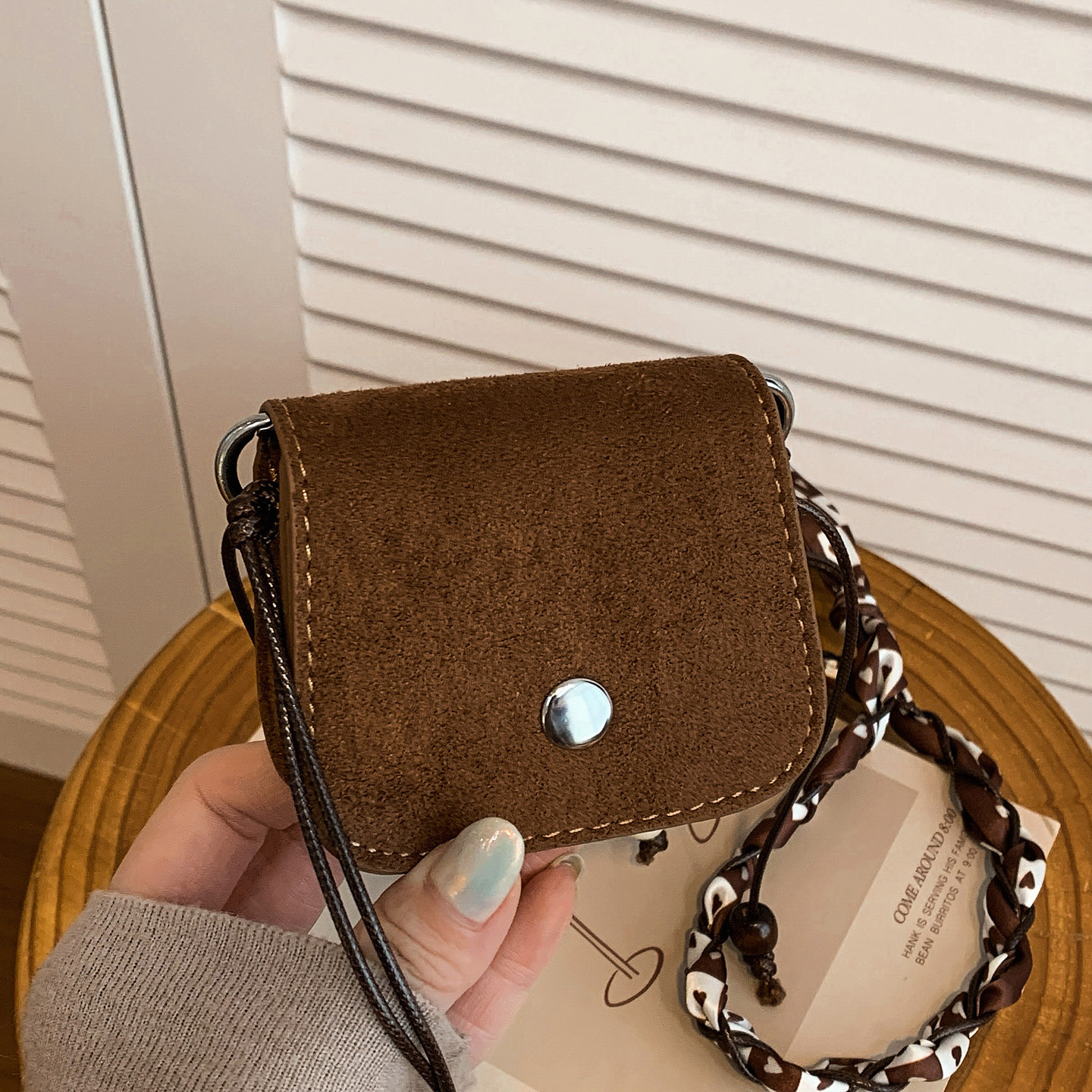 小众设计麂皮绒迷你口红小方包女2026新款冬季百搭复古单肩斜挎包