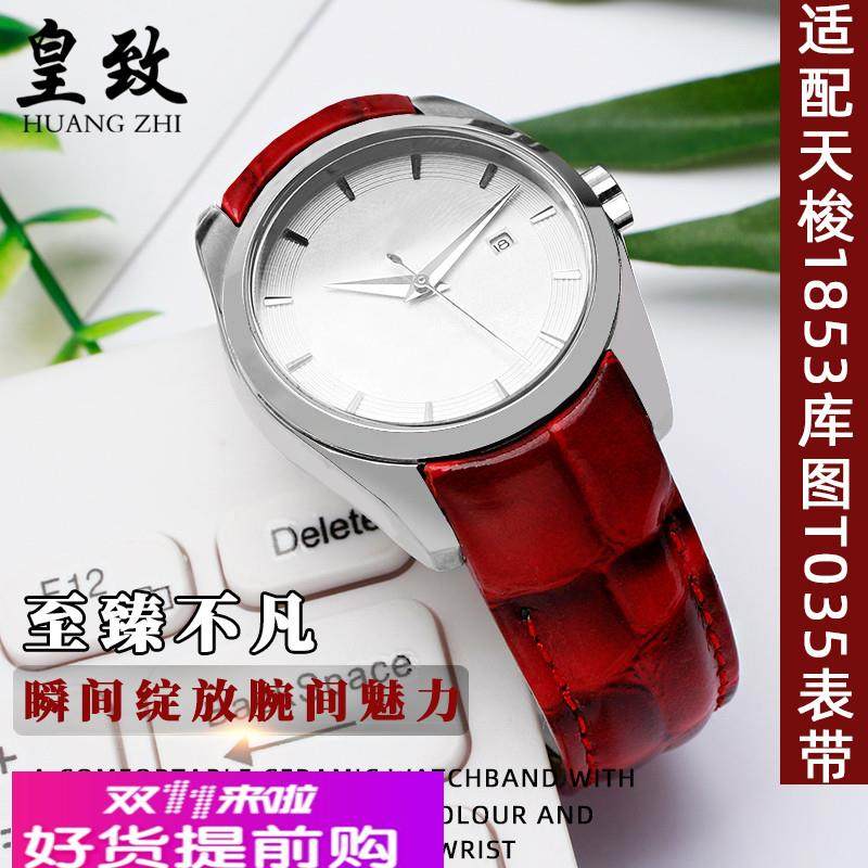 适用原厂天梭手表带1853库图T035女款T035210真皮酷图亮面牛皮带1